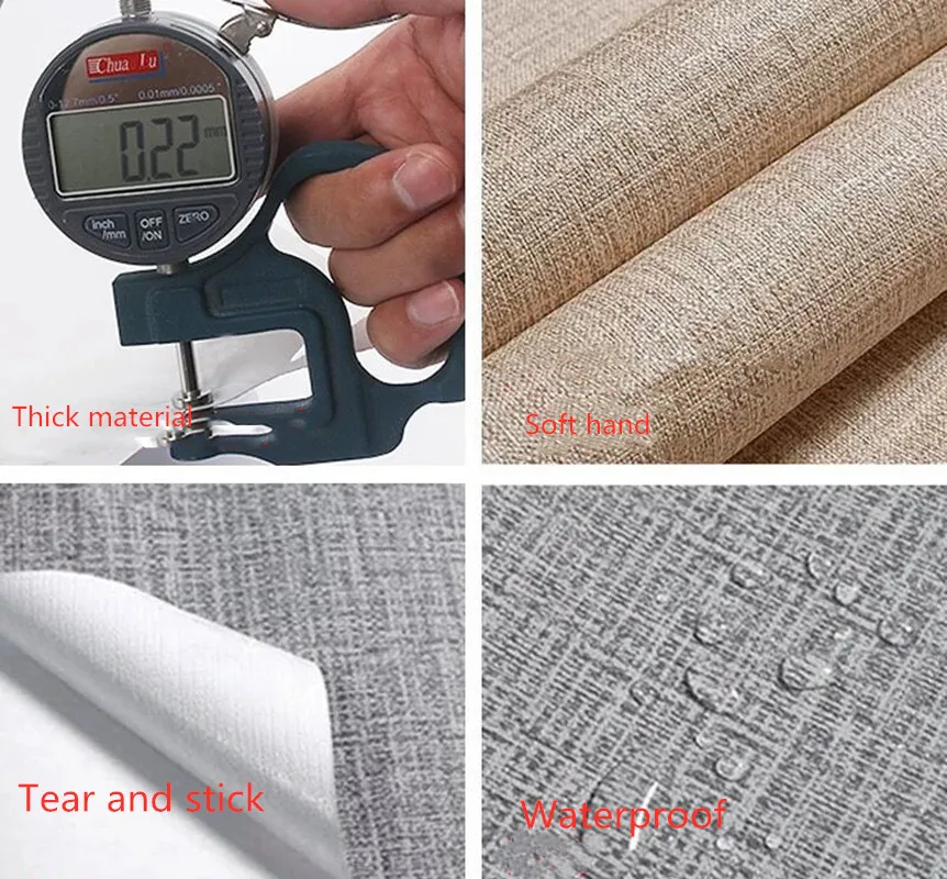 WOKHOME Лен ПВХ самоклеящаяся настенная бумага s для спальни гостиной DIY декоративная пленка настенные наклейки контактная бумага домашний декор