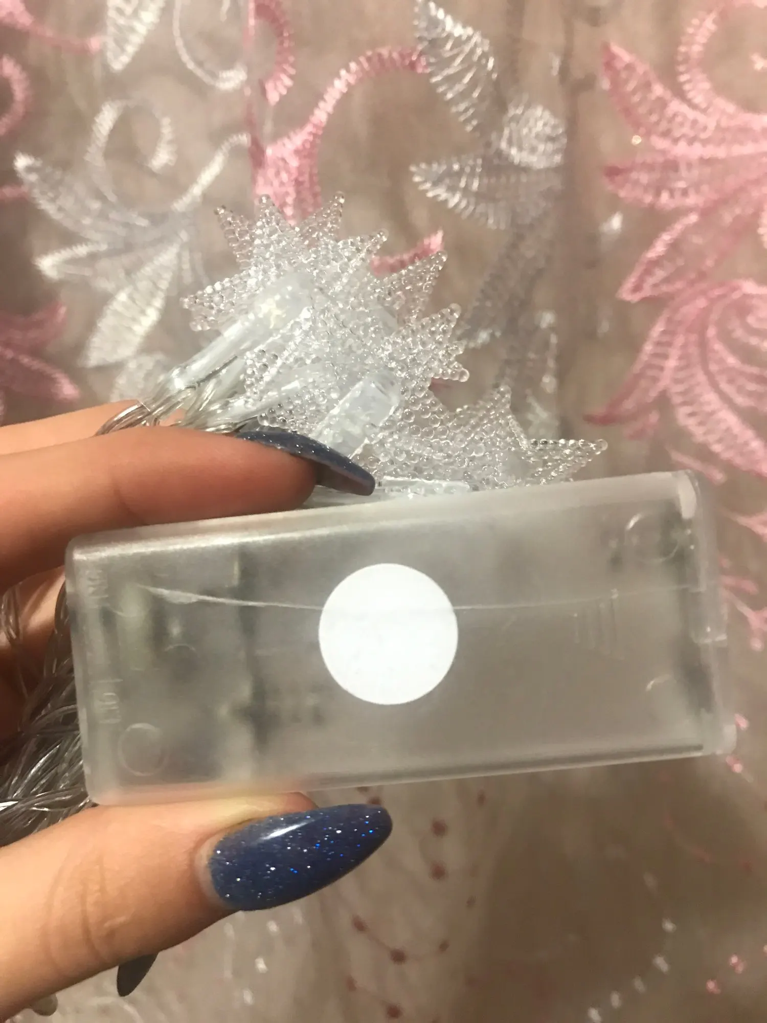 Все хорошо,но упаковано было в тонкий пакет и два слоя пупырки,без коробки,что доехала целая и рабочая - чудо! Ну и еще попалась снежинка среди звездочек,немного портит вид. А так все работает,в целом довольна)