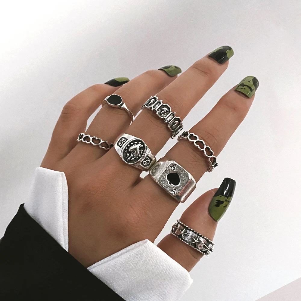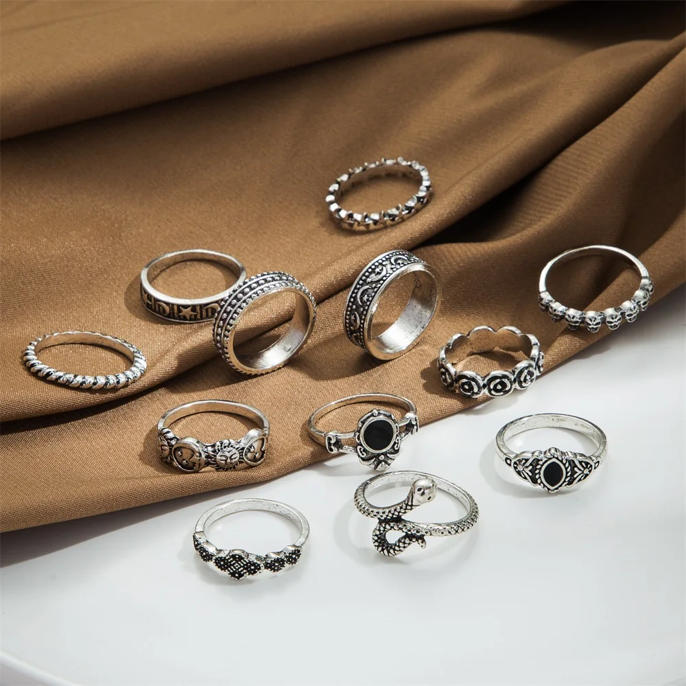 Женский комплект колец в стиле панк, винтажное посеребренное кольцо...