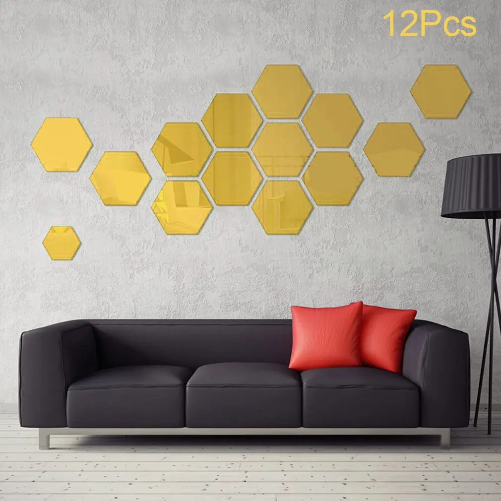 12 шт. Шестигранная стерео зеркальная Настенная Наклейка Съемная Водонепроницаемая самоклеящаяся Зеркальная Наклейка сделай сам домашняя наклейка для ванной и кухни