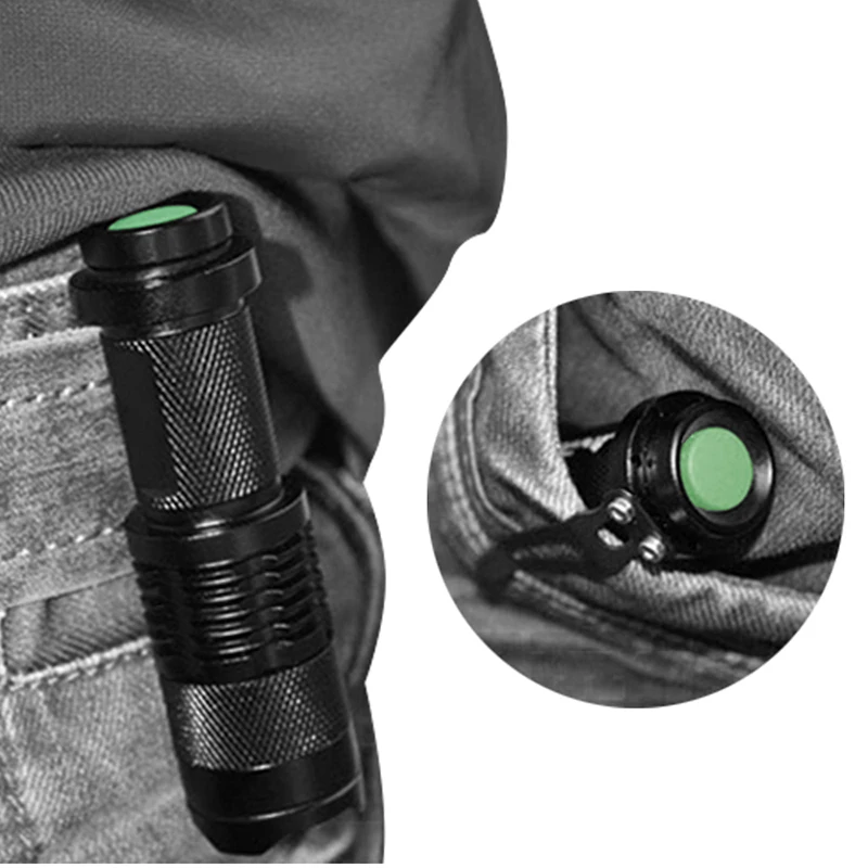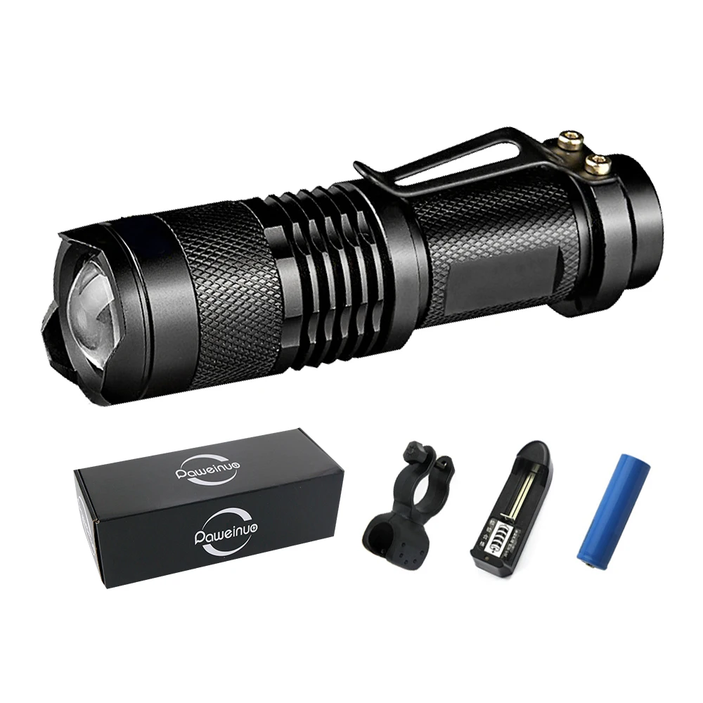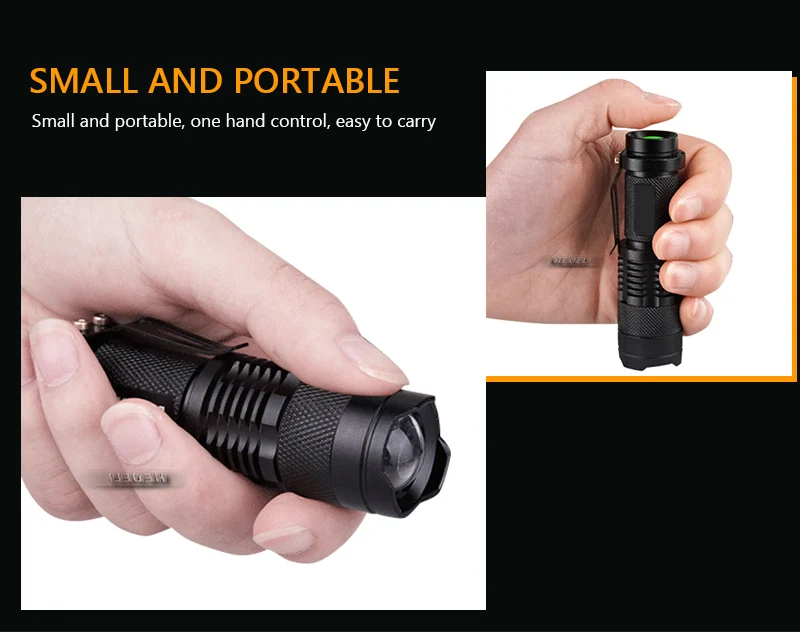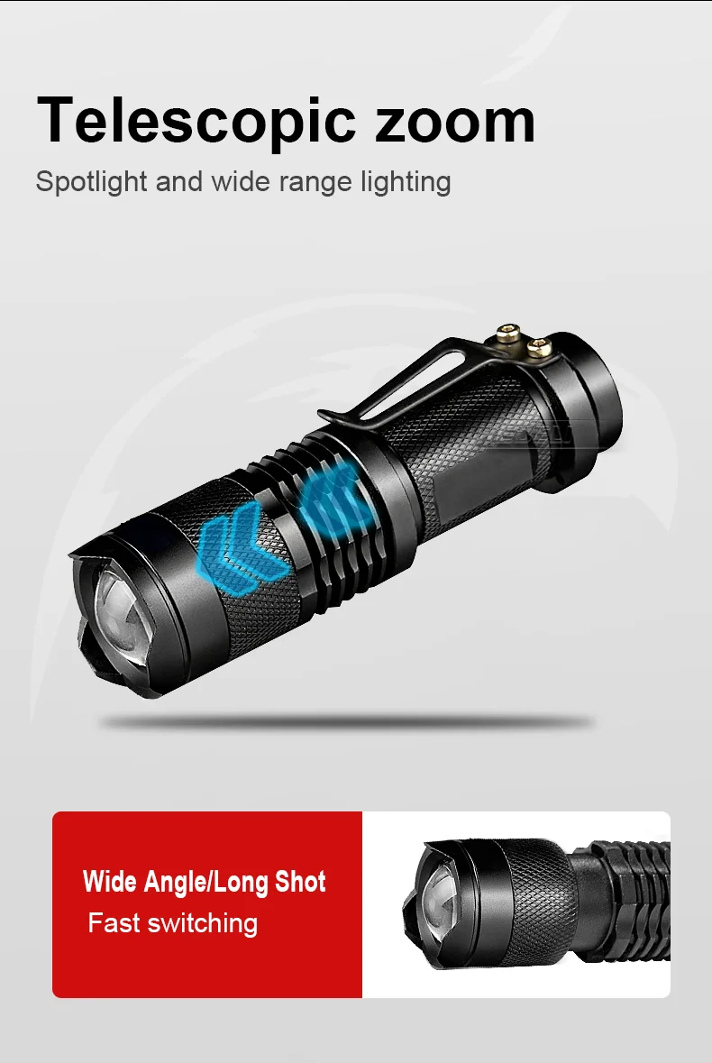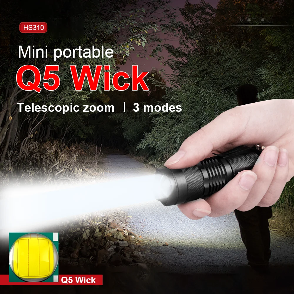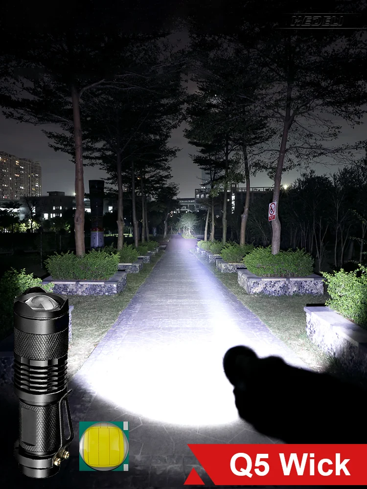 ⑥ Супер CREE Q5 мини-фонарикИспользование суперCREE Q5Фитиль, ощутите светильник и портативную яркость.В патроне лампы используется выпуклая линза, которая имеет лучший эффект конденсации, а дальность может достигать 500 метров.С держателем для ручки, очень маленький, легко вынимается, незаменимо для путешествий на велосипеде и автомобиле