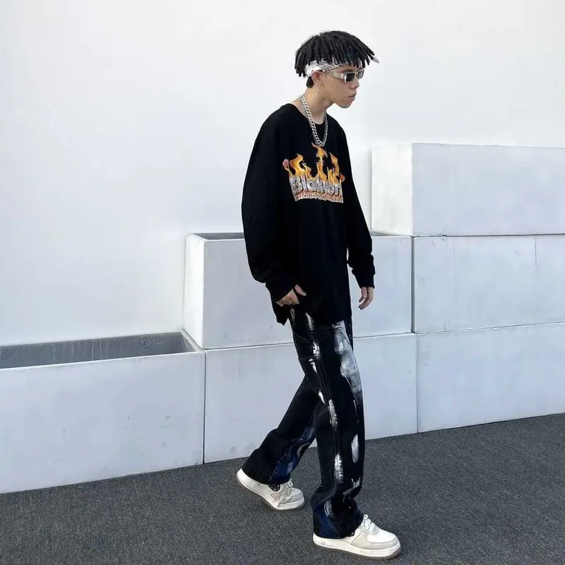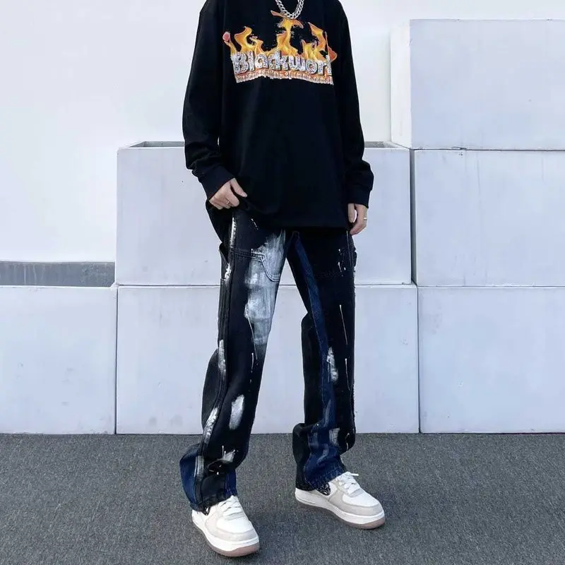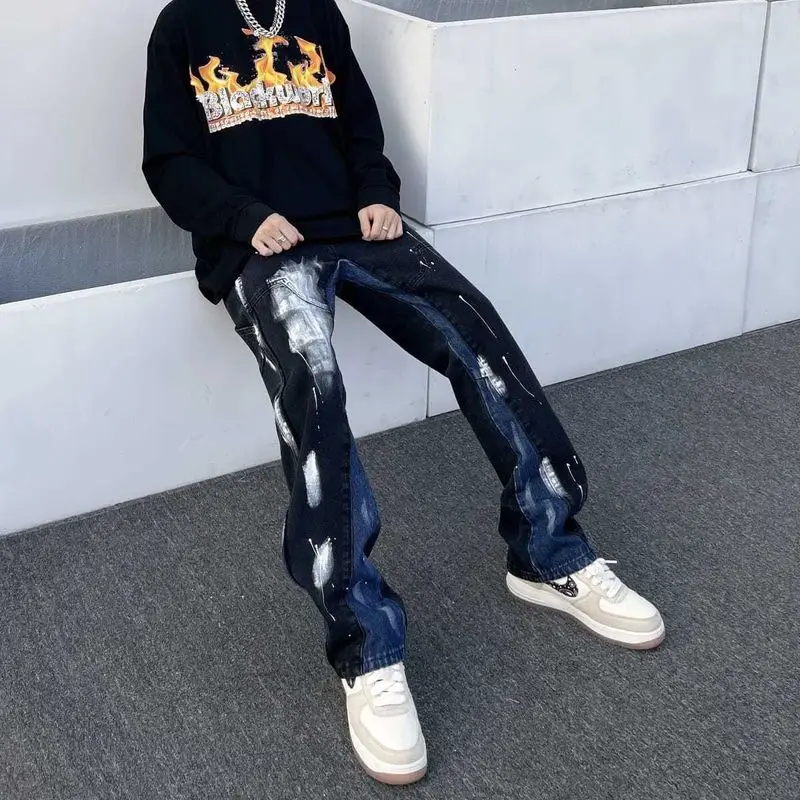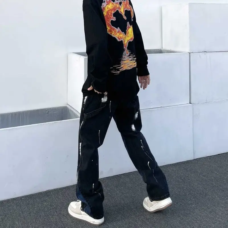 Джинсы с широкими штанинами мужские, прямые свободные брюки с больш...