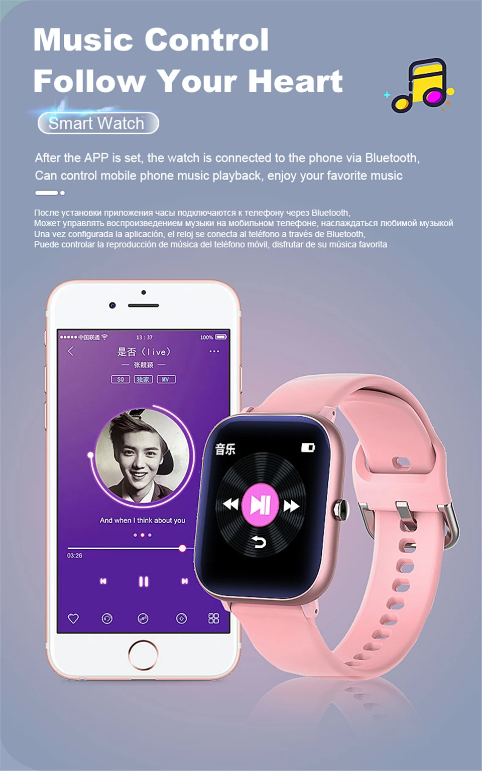 После установки приложения часы подключаются к телефону через Bluetooth,Можно управлять воспроизведением музыки на мобильный телефон, наслаждаться любимой музыкой