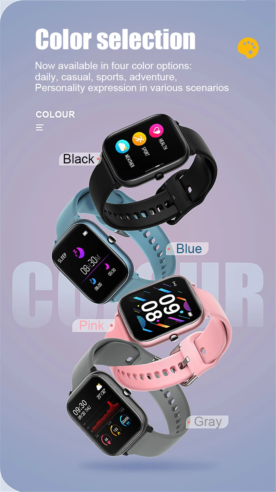P8-это наше последнее поколение и наиболее экономичное Смарт-часы. В этой новой версии, Смарт-часы LanJng P8 имеют совершенно новый 1,54 "цветной дисплей и полный емкостный сенсорный экран, поддерживающие краны и swipes, поэтому легко читать и работать.Мягкий силиконовый ремешок делает P8 легким и комфортным носить на запястье и доступен в 4 красивых цветах. Оставайтесь здоровыми> Спорт: отслеживание активности в течение всего дня, несколько спортивных режимов, секундомер, отчет о спортивных данных.> Здоровье: 24/7 пульс, кровяное давление, кислород в крови, отслеживание сна и стадии, напоминания о движении.> Жизнь: уведомления о смартфонах, будильник, погода, затвор, управление музыкой + циферблат часов. (Поддержка пользовательских циферблатов часов.)ЯзыкPush информация: Поддержка всех языковЯзыки смарт-часов: английский, русский, испанский, португальский, немецкий, французский, китайский, голландский, турецкий, Малайзийский, польский, чешский, словацкийЯзык приложения: Поддержка английского, упрощенный китайский, традиционный китайский, голландский, русский, французский, немецкий, португальский, испанский, турецкий, японский, польский, арабский, Малайзийский, тайский, чешский, словацкий