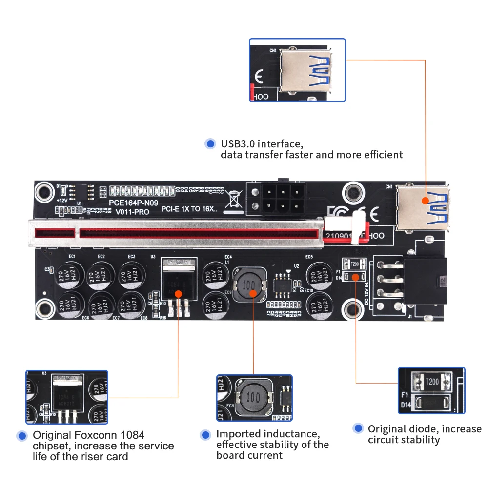 PCIE Riser VER011 pro Улучшенная супер версия для майнинга PCIE X16...