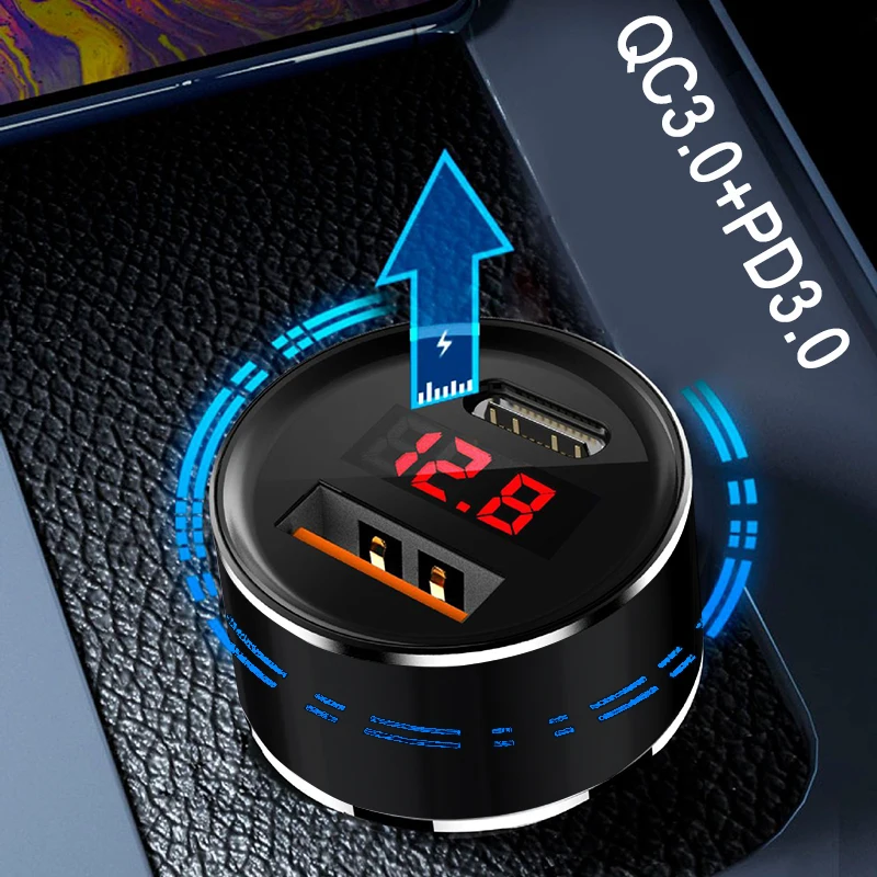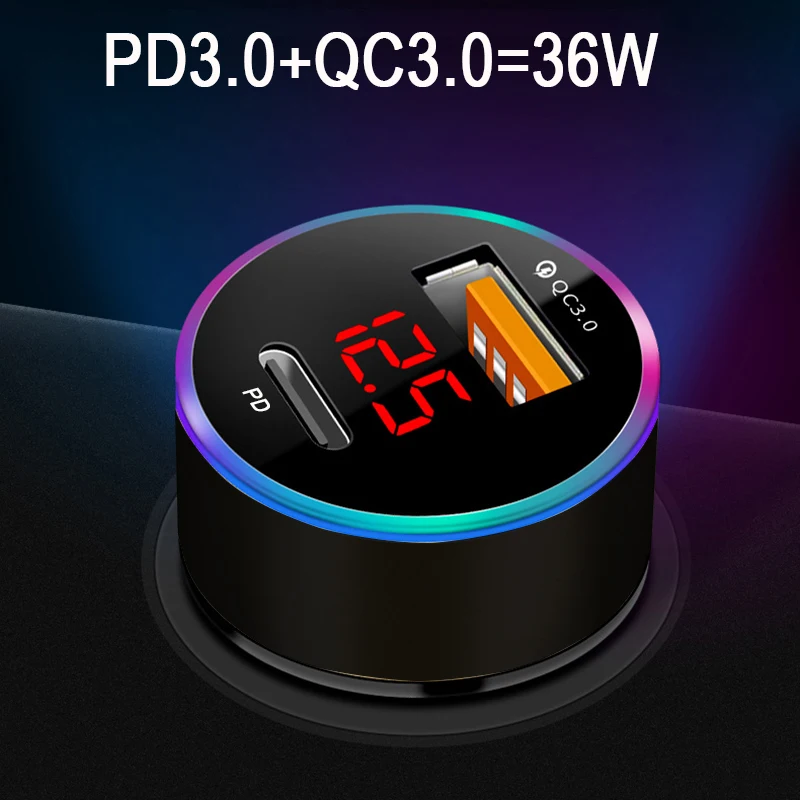 USB + PD автомобильное зарядное устройство адаптер автомобильный прикуриватель светодиодный вольтметр для всех типов телефона зарядное устройство умный USB быстрая зарядка