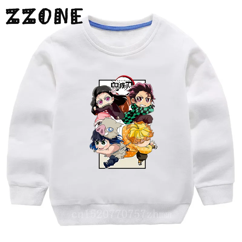Детские толстовки с рисунком аниме рассекающий демонов, Kawaii Kimetsu No Yaiba, детские толстовки с мультяшным принтом, детский пуловер, топы, одежда для девочек и мальчиков
