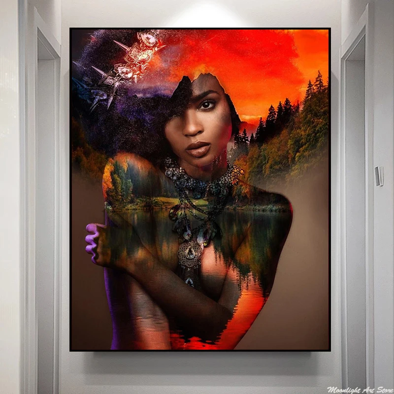 Абстрактный пейзаж портрет Обнаженная масляная живопись африканская черная женщина граффити плакаты Печать на холсте Настенная картина комната Домашний декор