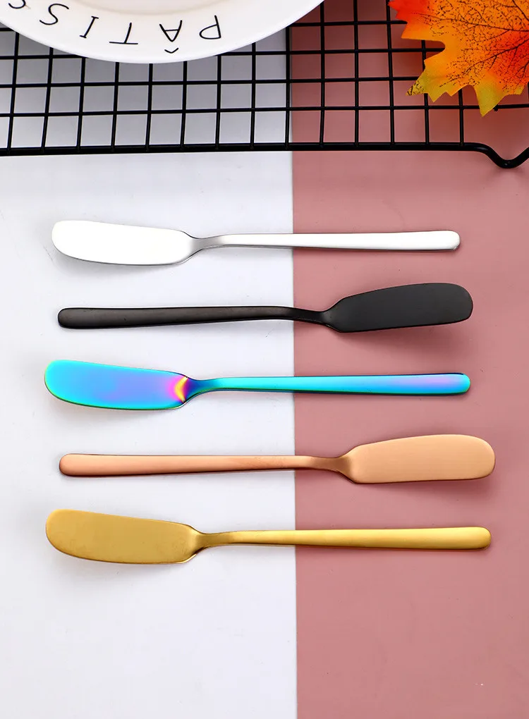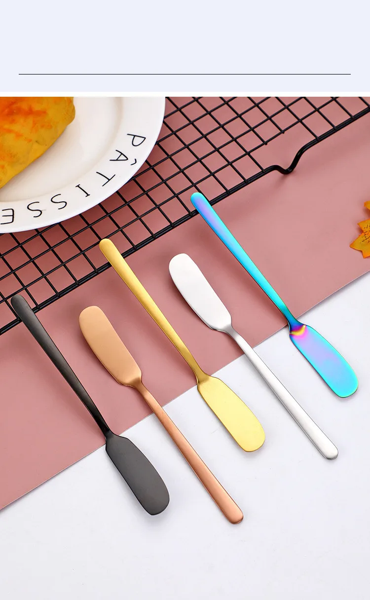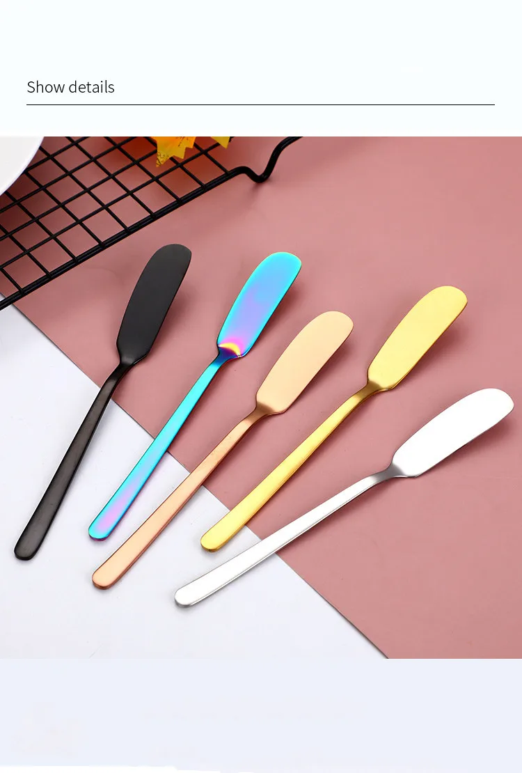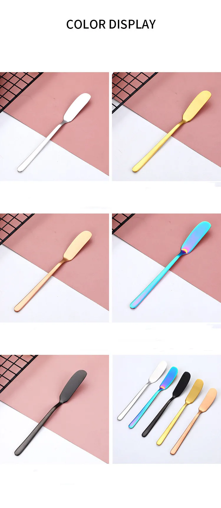 Параметры продуктаСтоловые приборы из нержавеющей сталиБрендовый нож для масла из нержавеющей сталиТоварный материал 304 нержавеющая стальОбласть применения: десертные магазины, предметы интерьера и т. Д.Цвет изделия показан нижеРазмер изделия показан на рисунке нижеТехнология зеркальной полировки поверхности