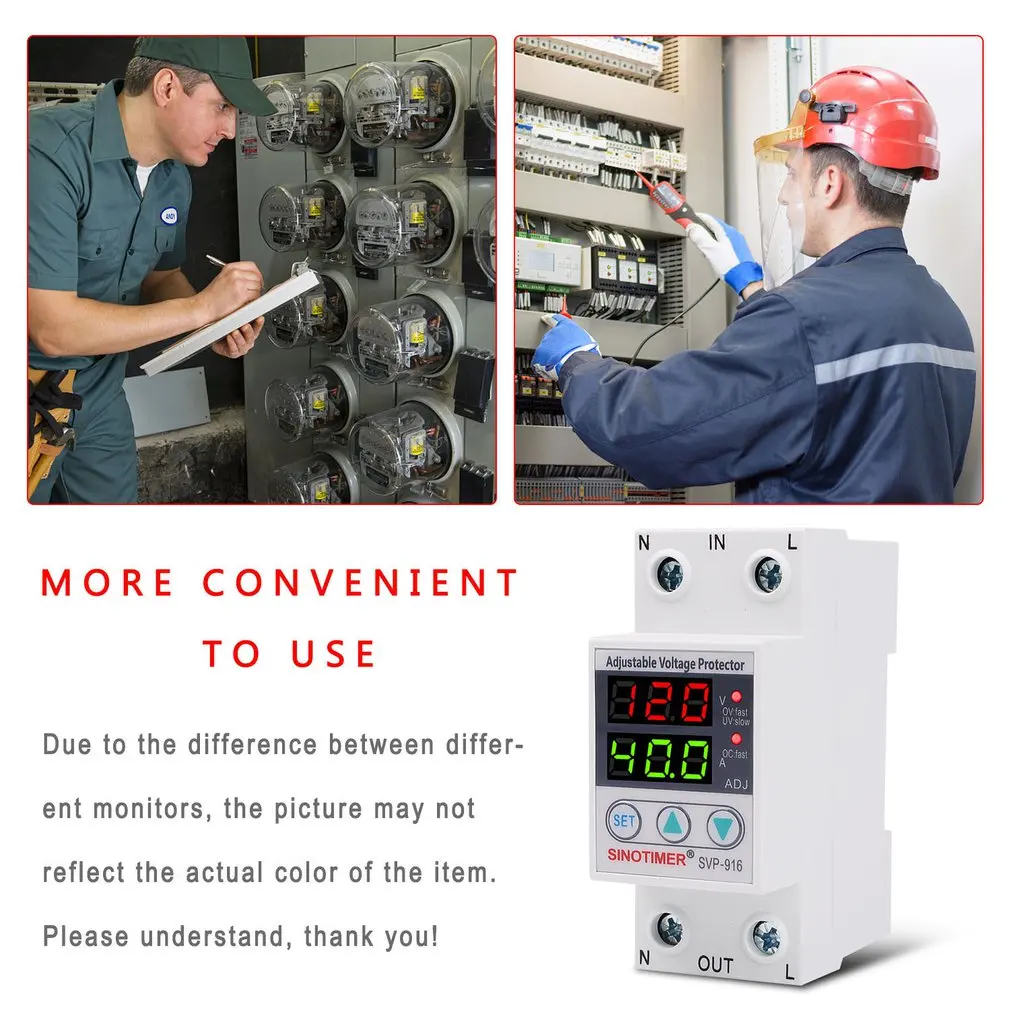 Автоматическая защита от перенапряжения и пониженного напряжения защитное устройство подходит для однофазного переменного тока 230V или 120 В пер. тока, 50/60 Гц, номинальный рабочий ток 40A или 63A или 80A или меньше нагрузки.