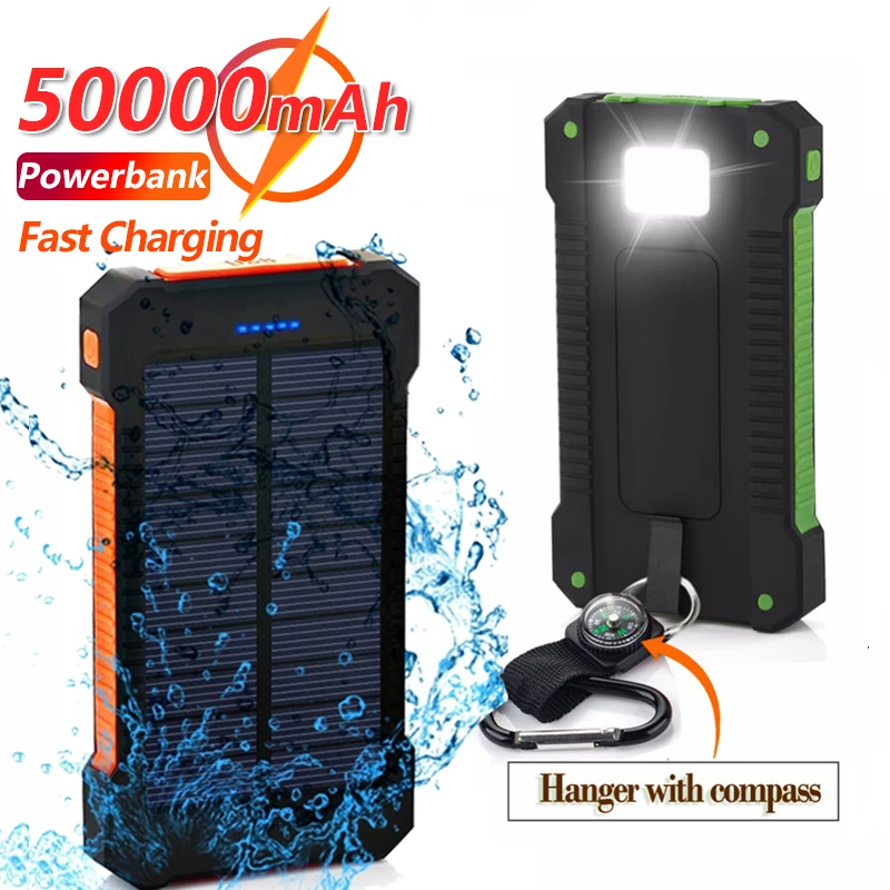 Внешний аккумулятор на солнечной батарее, 50000 мАч, 2 USB-порта