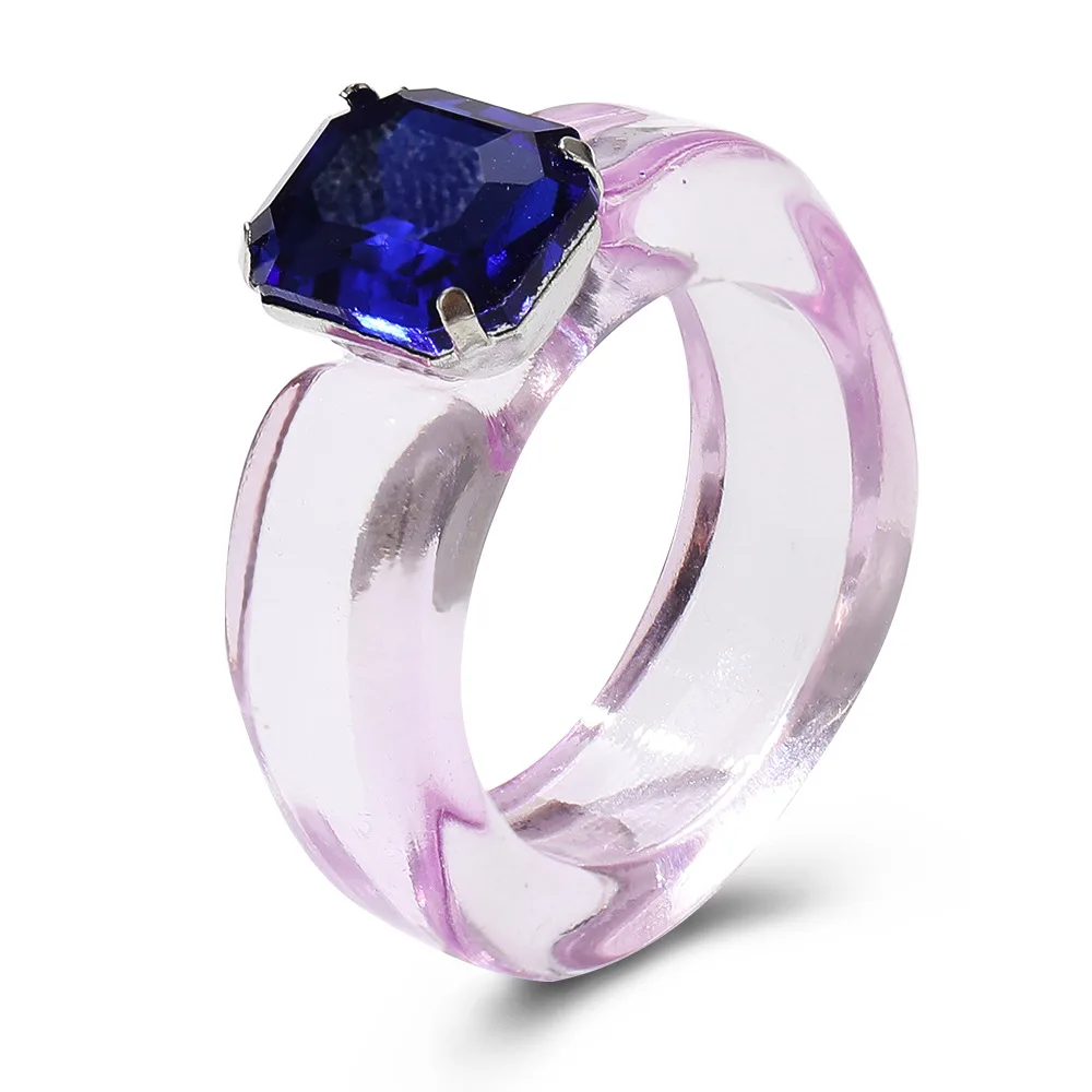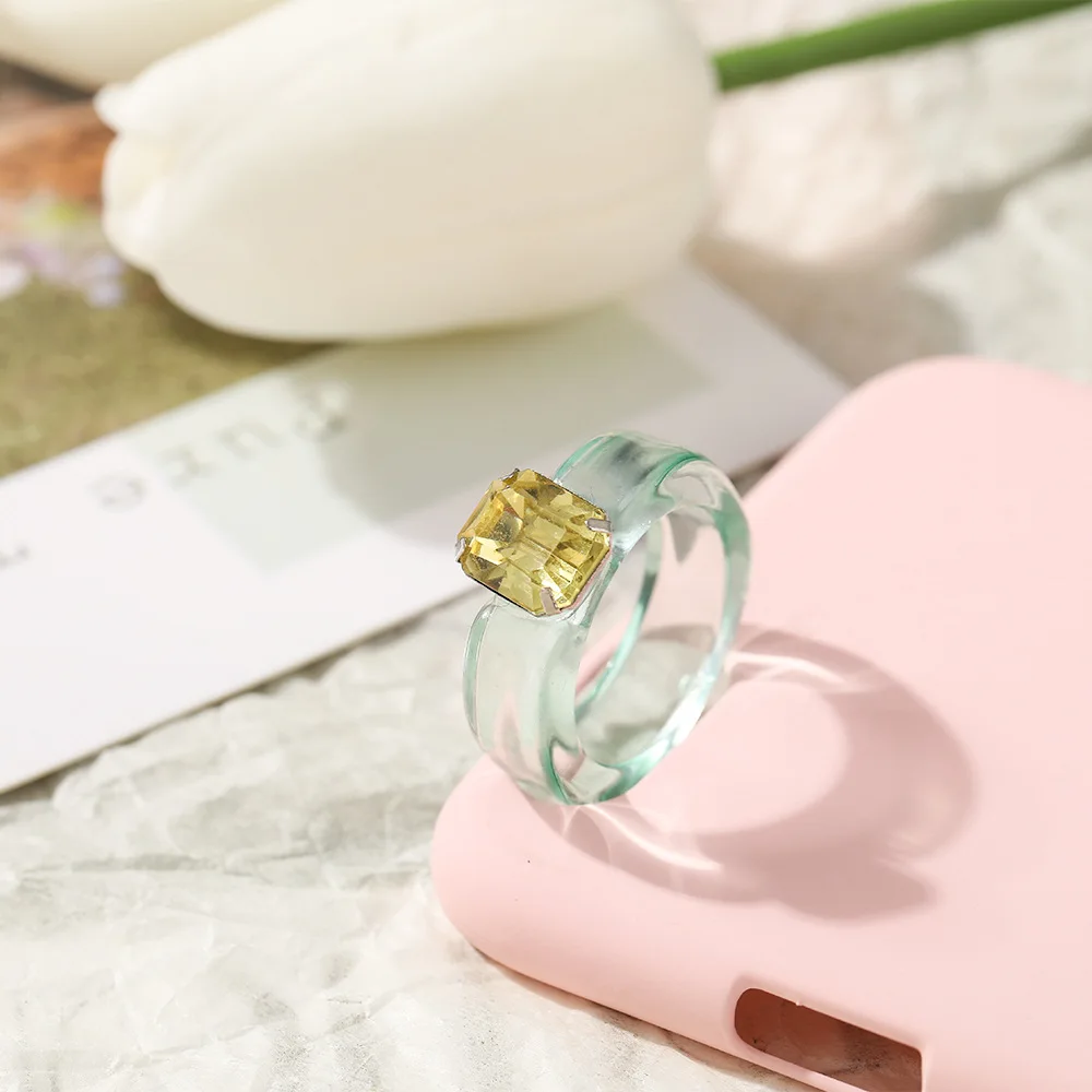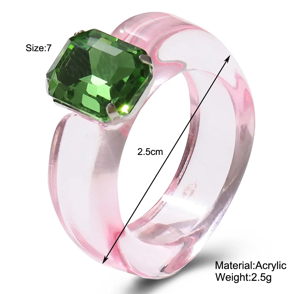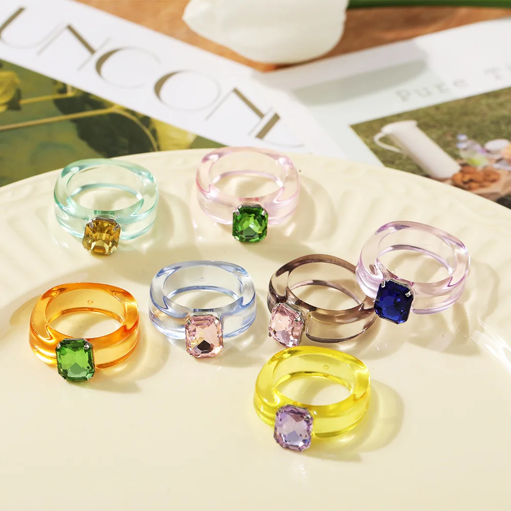 Женские Акриловые Кольца из прозрачной смолы, яркие Геометрические Квадратные Кольца карамельных цветов, повседневные украшения на палец