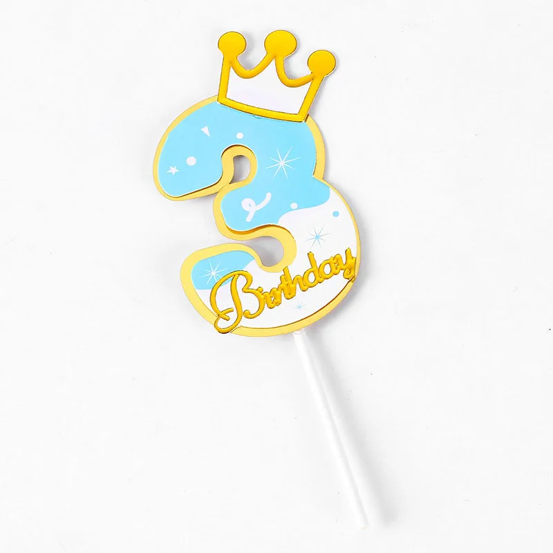 Топпер для торта на день рождения с цифрами, милый розовый, синий, ...
