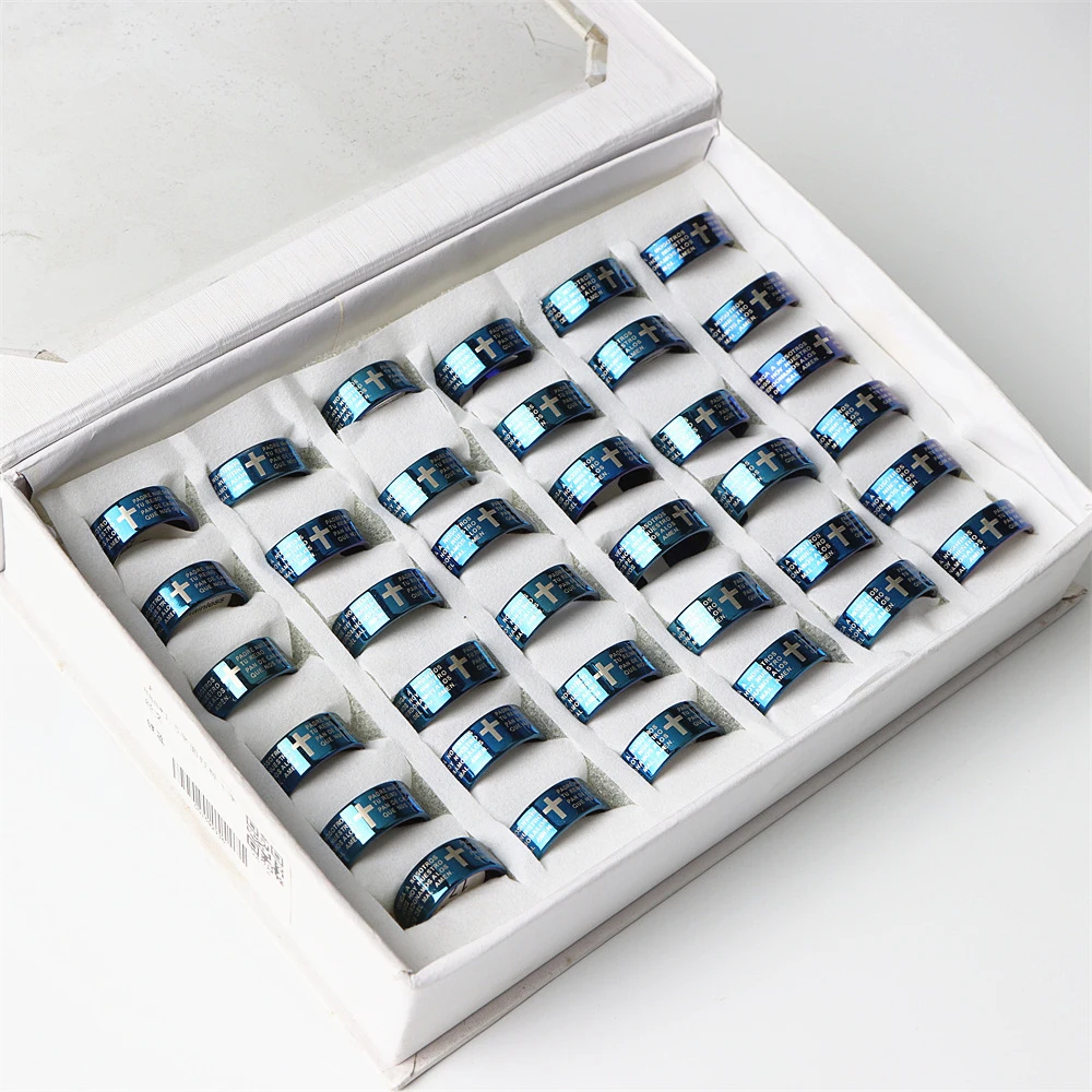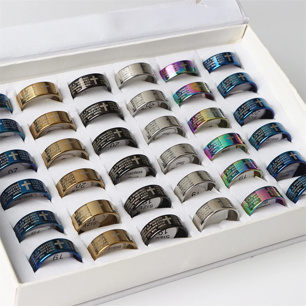 36 шт./лот Кольца Крест ИисусаМатериал: нержавеющая стальРазмер: 17 мм до 21 мм Размер США 7 до 11Количество: 36 шт./лотСтиль: свободный выбор 5 цветовУпаковка: Opp мешок, коробка не включаетВес: около 5gХарактеристики: нержавеющая сталь, не выцветаетФорма креста