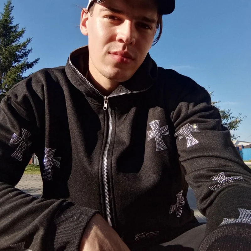 Хип-хоп толстовки, набор для мужчин, готические Стразы, толстовка с...