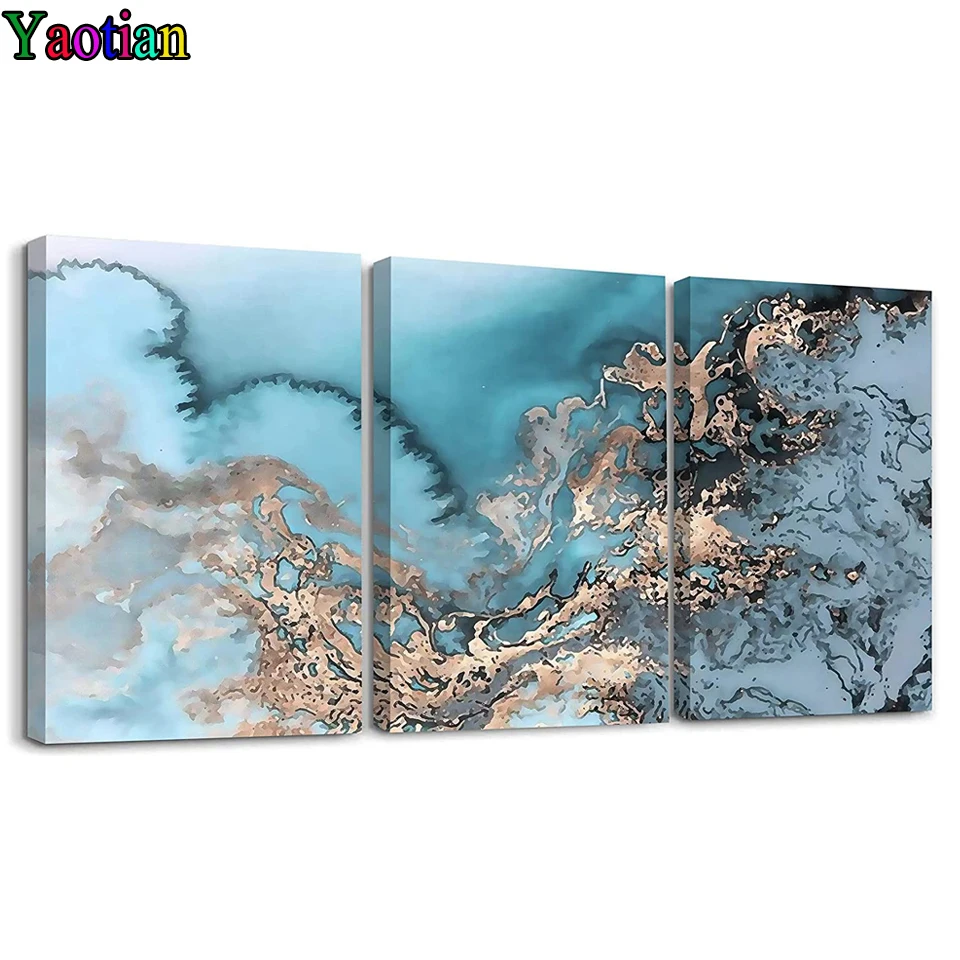 Абстрактная живопись, Настенная картина для украшения гостиной, Алмазная мозаика, картина с квадратными стразами, современный Триптих для настенного искусства