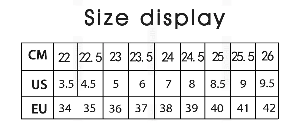Пожалуйста, в них не учитывается, что там будет незначительно отличаться от заявленного из-за 0,3 см отклонение между размерную сетку, а также размерную сетку в реальности обувь.