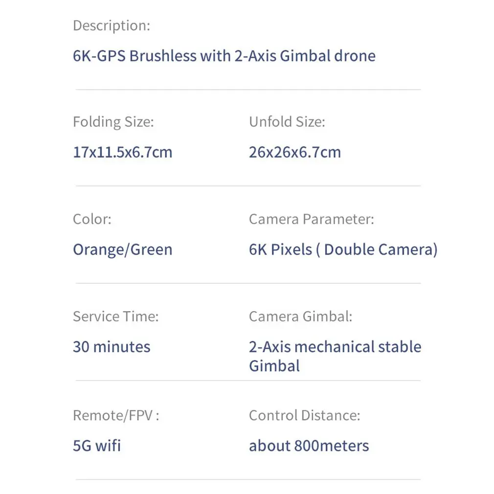 5. Двухосный самостабилизирующий шарнир эффективно устраняет тряску камеры, независимо от того, как Дрон наклоняется и трясется, камера всегда остается параллельной горизонтали.