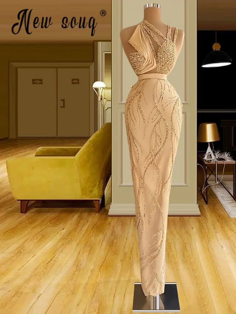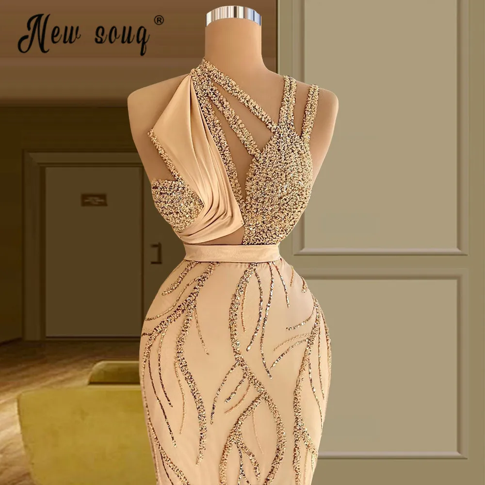 Модное вечернее платье цвета шампанского 2021, атласное платье русалки с бусинами, Vestidos De Fiesta, длинное торжественное вечернее платье, Robe De Soiree