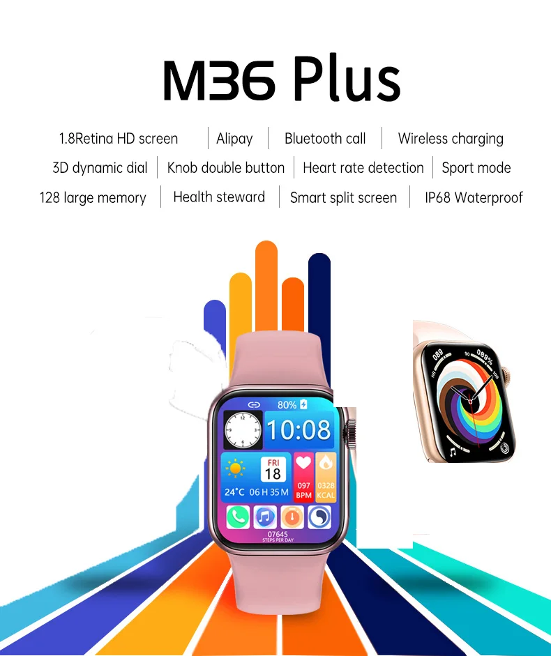 Оригинальные Смарт-часы M36 plus, мужские Bluetooth звонки, сплит-экран, артериальное давление кислорода, беспроводное зарядное устройство для женщин, умные часы PK W37