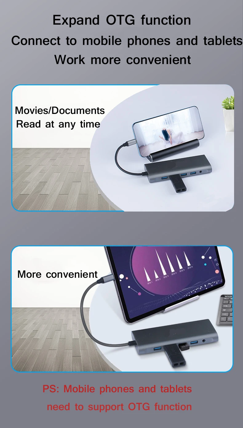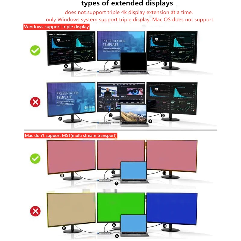 Внимание: совместимый компьютер и мобильный телефон нужен протокол Type C 3,1, затем можно использовать.Наши продукты не поддерживают модель Samsung Dex.Совместимый компьютер и мобильный телефон нужен протокол Type C 3,1, затем можно использовать интерфейс RJ45 обычно. Для установки драйвера используется протокол Type C 3,1. Мы не предоставляем драйверы.Вежливое напоминание: если вам нужен европейский размер продукт достигает 4K60hz, только в том случае, при условии, что ваша поддержка устройства 4K60hz, а кабель меньше, чем 1,5 метров.Когда вы используете два порта HDMI, мощность порта PD не может превышать 60 Вт, если более 60 Вт, то это приведет к нормальному использованию двух портов HDMI.При использовании RJ45, пожалуйста, не используйте PD зарядки в то же время. Поскольку ток слишком большой, RJ45 не будет работать нормально, выключить и нагревать.Обратите внимание:Порт зарядки PD требует оригинального зарядного устройства Macbook для зарядки вашего компьютера.