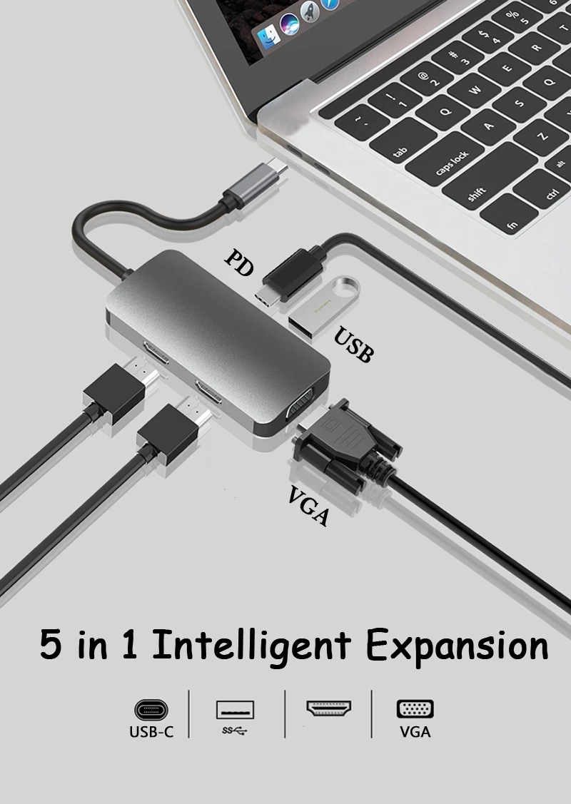 2 x HDMI-Совместимость: 4K 30HZ обратная совместимость с 1080P, 720P и т. Д.4 порта USB1 x VGA 1080P1 слот для sd-карты1 x tf-карта (поддержка нескольких типов tf-карт и sd-карт, sd-карт и tf-карт не может использоваться одновременно)1x3,5 мм аудио Jack【Compatible компьютер и мобильный телефон необходимо Тип C 3,1 протокол затем можно использовать аудио-интерфейс. Менее, чем протокол Type C 3,1, аудиопорт не может быть использован. 】И аудио порт, который нужно использовать нарочно, вам нужно использовать подключенный к порту HDMI, затем аудио порт может использоваться нормально.1 x Rj45: 1000 megabit Ethernet Post1 x порт доставки питания только sup порт s 85WPS: когда другие порты не используются.PS: компьютеры и ТВ-устройства должны поддерживать 4K/2K, а фактическое разрешение может достигать 4K/2K.Обратите внимание:Порт зарядки PD требует оригинального зарядного устройства Macbook для зарядки вашего компьютера.Посылка включает в себя: 1*12 в 1 ноутбук USB-C концентратор.