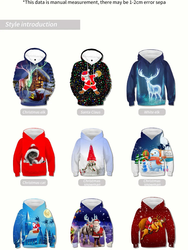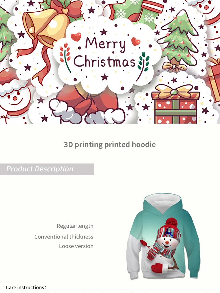 Толстовки с капюшоном в подарок на Рождество, тонкие свитшоты, Детс...