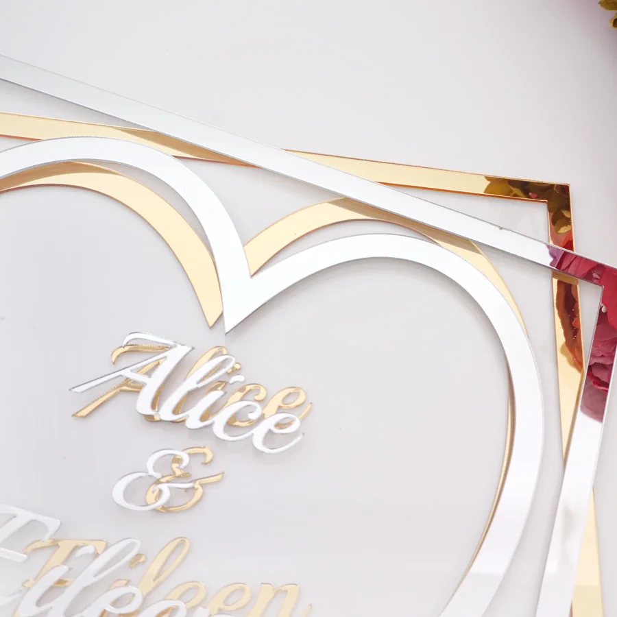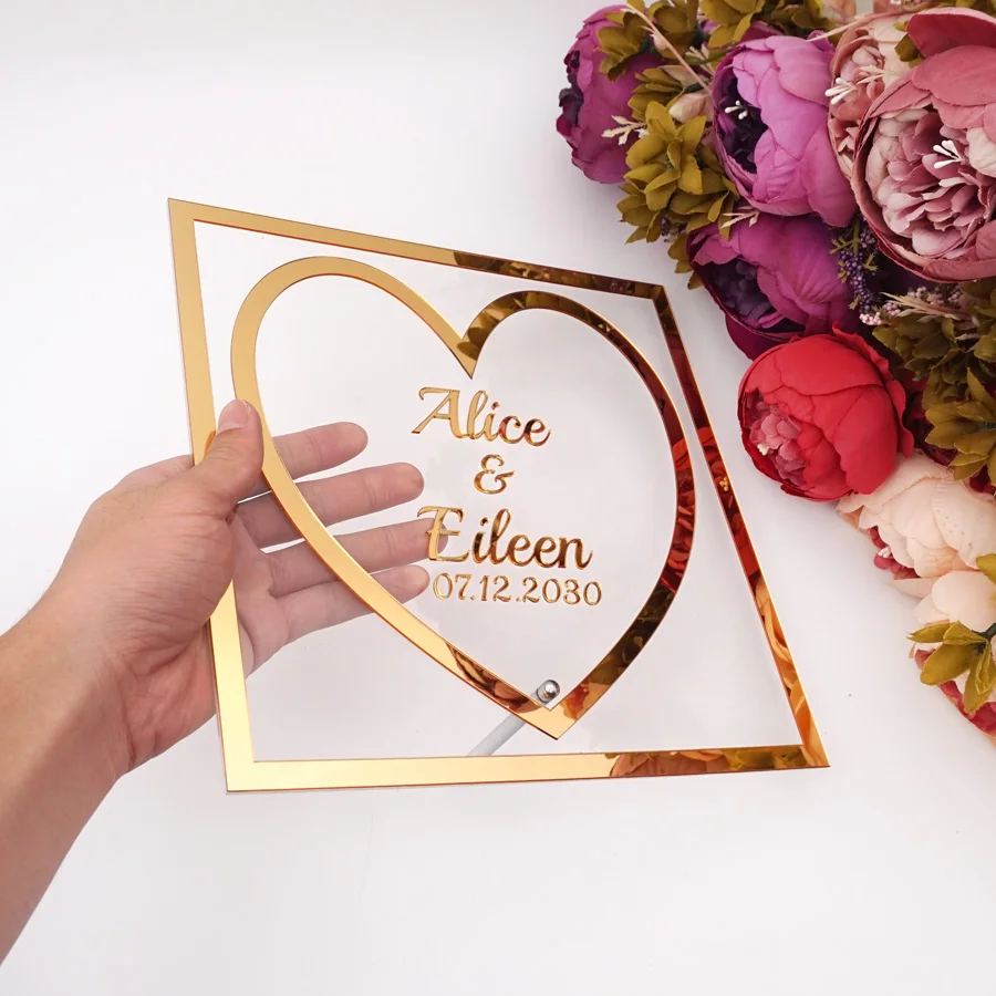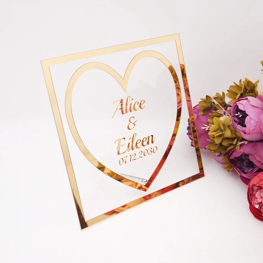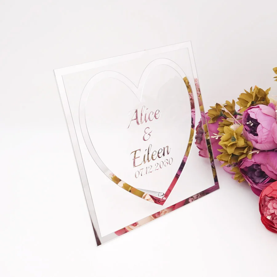 Персонализированная квадратная рамка с именем сердца, свадебное стоячее украшение для стола, акриловое зеркало, реквизит, декор для вечеринки, подарки для гостей