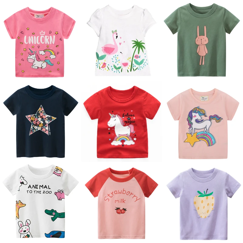Футболка для девочек, детские хлопковые топы, Мультяшные рубашки с ...