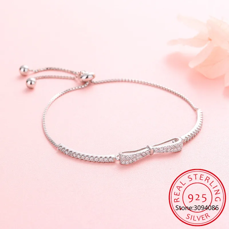 S925 штамп серебряного цвета Модный бант регулируемые браслеты 2021 Новый Блестящий Циркон женские эффектные ювелирные изделия лучший друг подарки