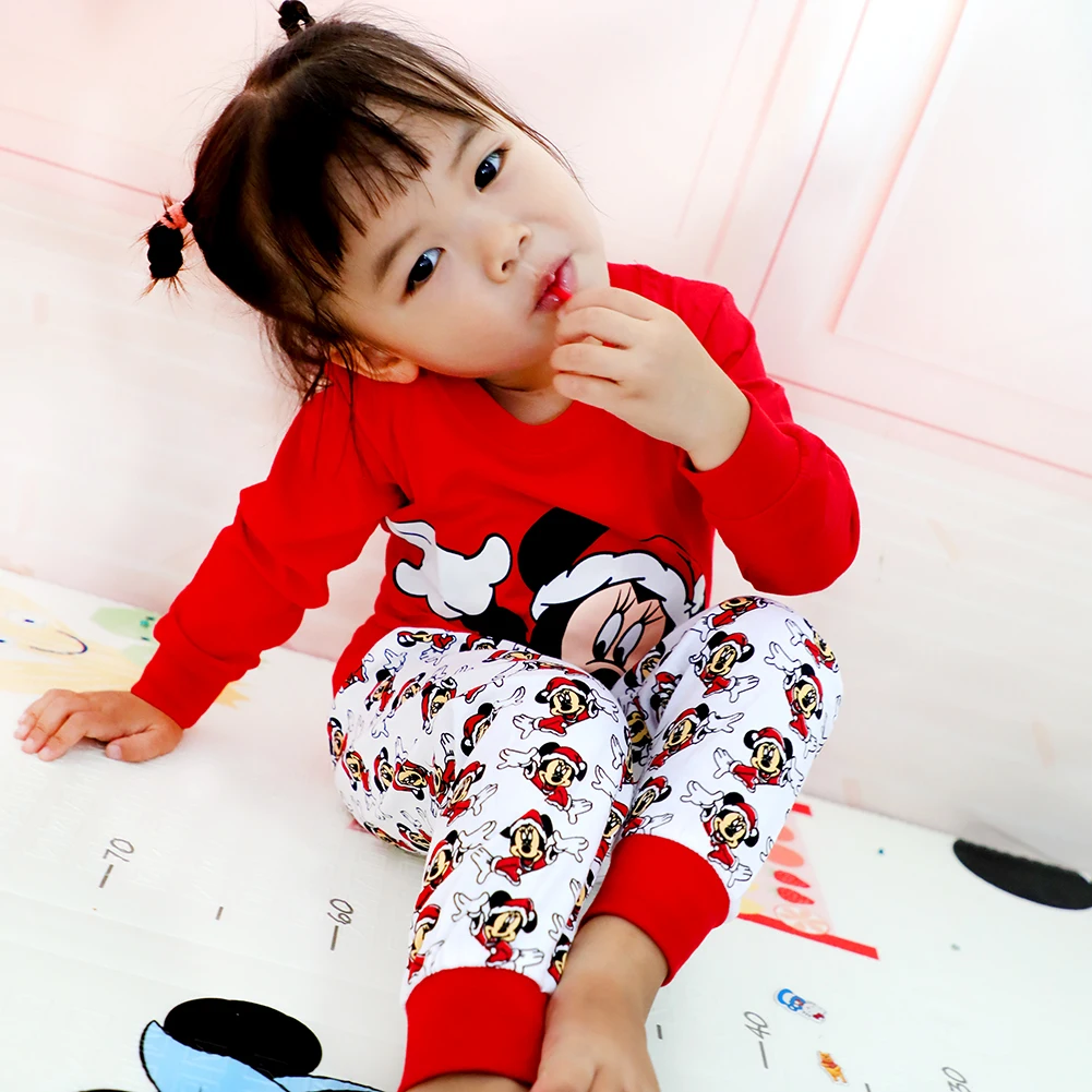Весна-Осень 2022, Детские разноцветные пижамы для мальчиков и девочек, пижамы с длинным рукавом и Минни, Рождественская одежда