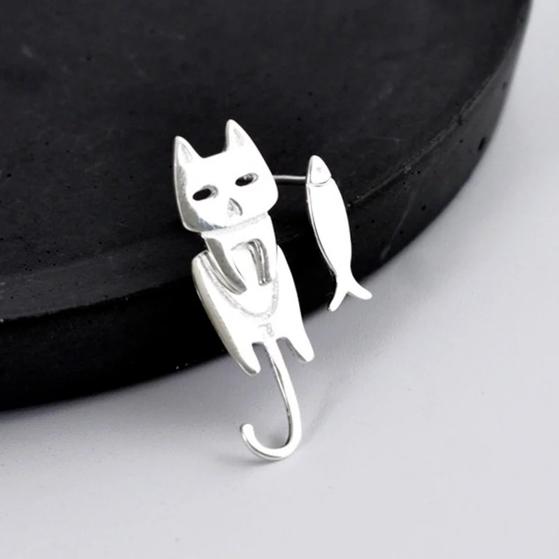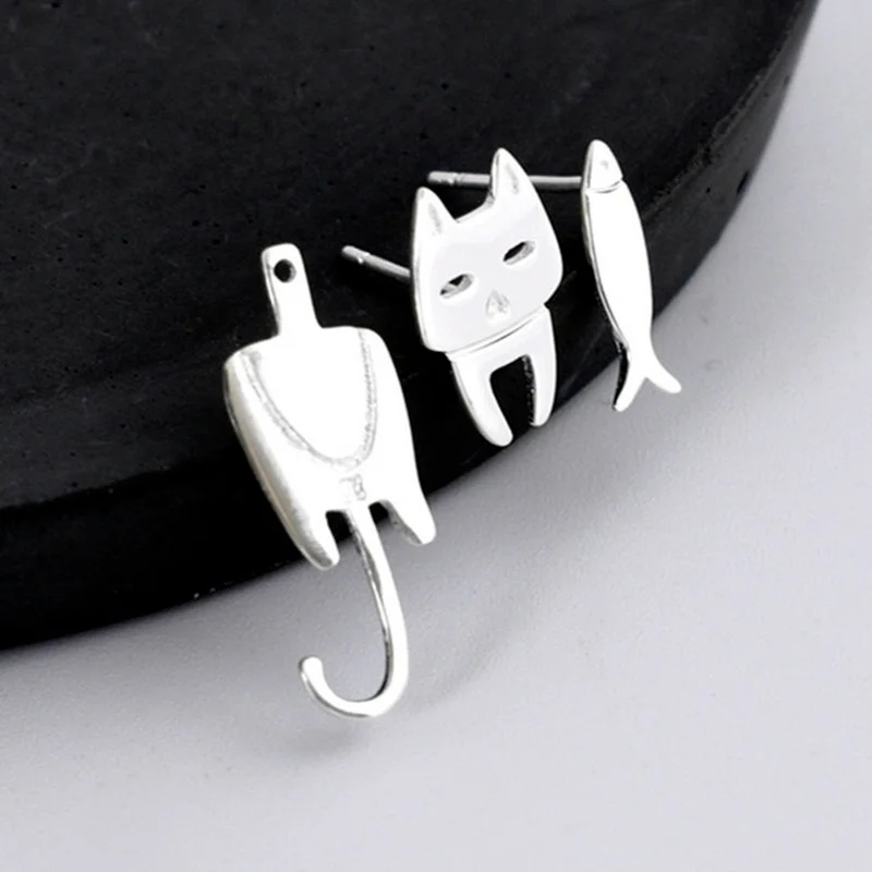 Простые и креативные милые серьги-гвоздики в виде маленькой рыбки и кота женские студенческие корейские дизайнерские асимметричные серьги-гвоздики в виде кошачьих рыбок ювелирные изделия серьги