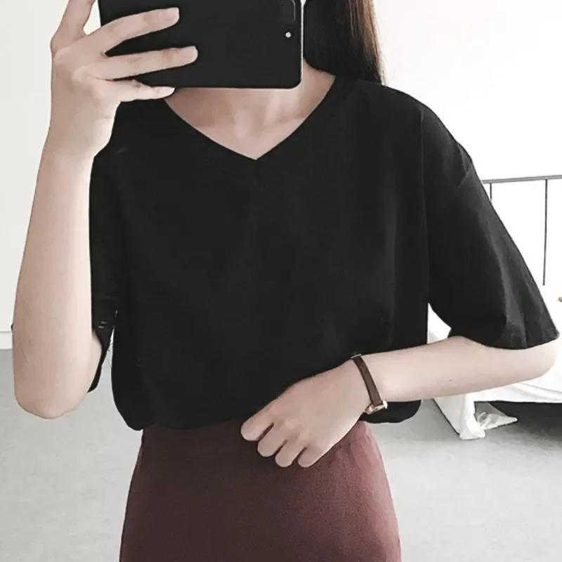 Базовые летние женские футболки, корейские топы, элегантные базовые...
