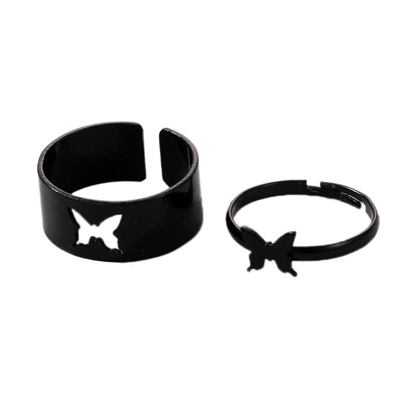 Парные открытые кольца в стиле хип-хоп и панк с бабочками разных фо...