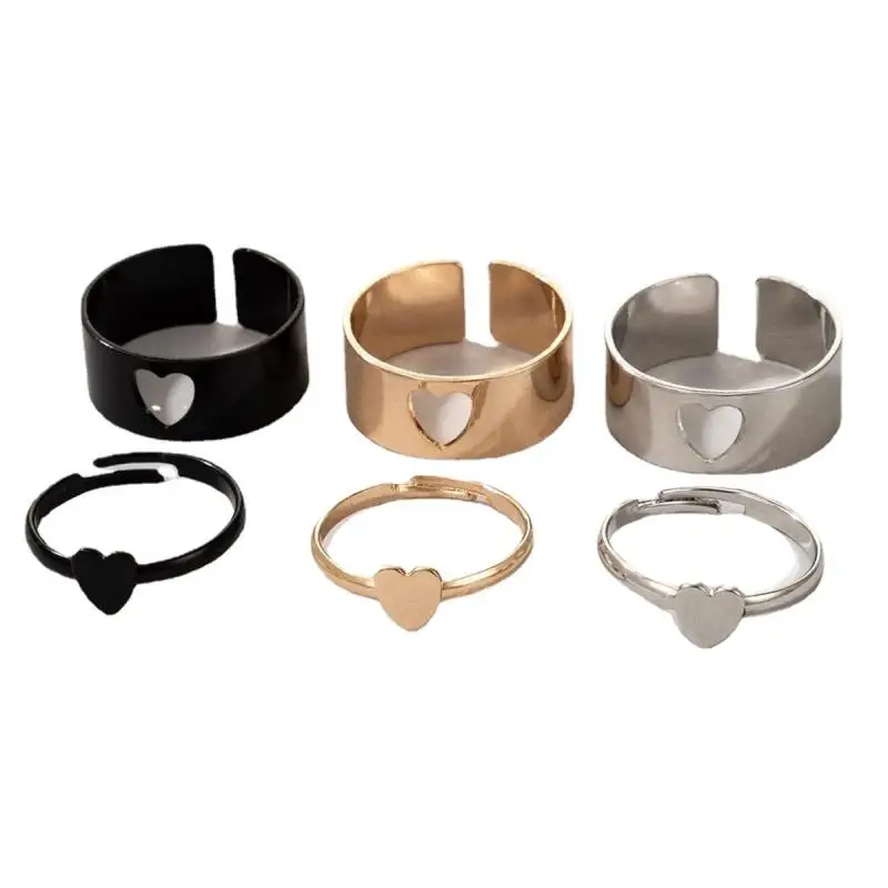 Набор колец, 6 колец, с бабочкой, сердцем, кольца для мужчин и женщин
