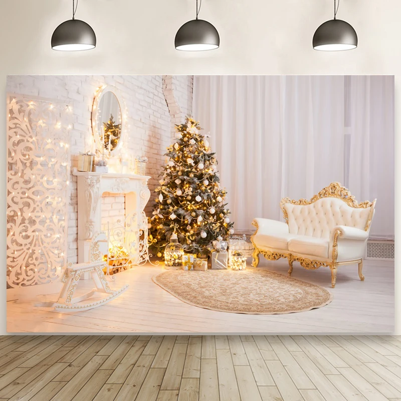 Рождественская елка светодиодные фонари подарок диван романтическая белая кирпичная стена фотография фон фестиваль семейная фотостудия фоны для фотосессии