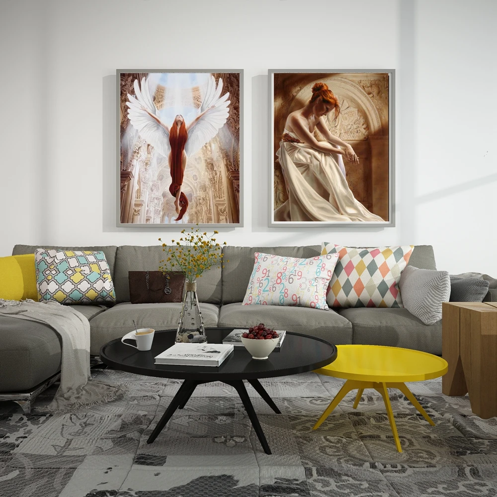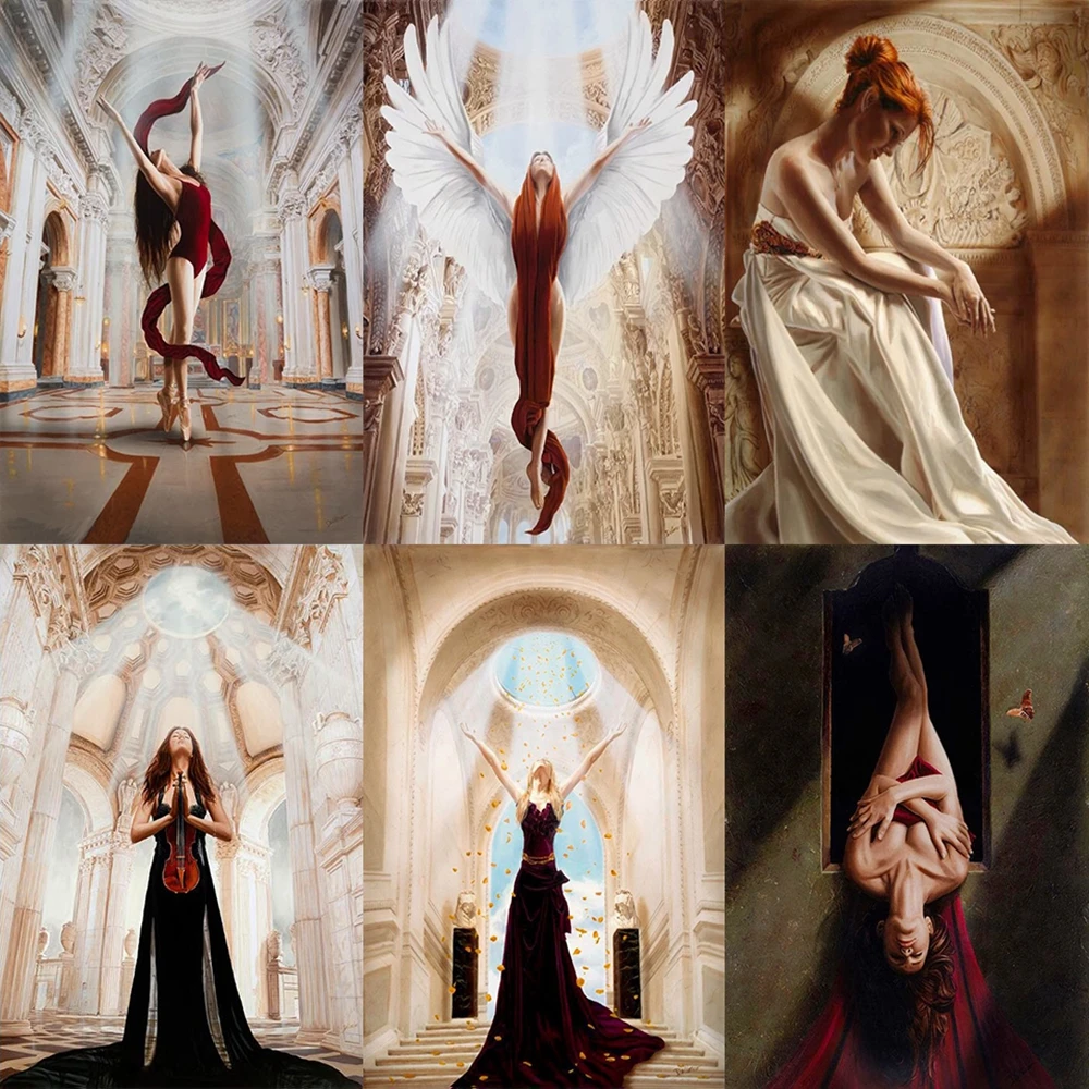Алмазная живопись сделай сам, богиня, ангел, церковь, 5D мозаика, полноразмерная круглая алмазная живопись, Постер, домашний Настенный декор, украшение комнаты