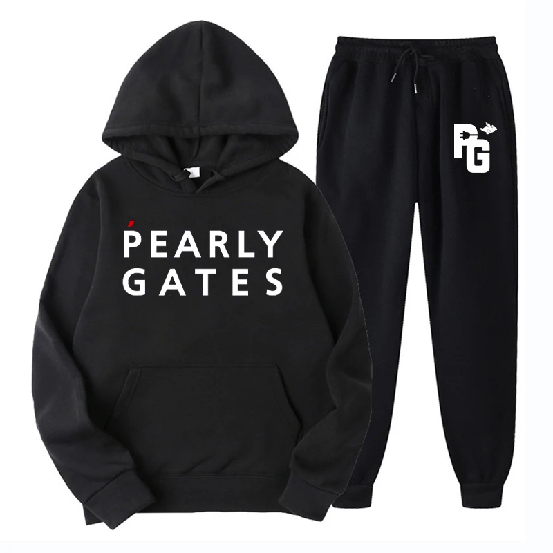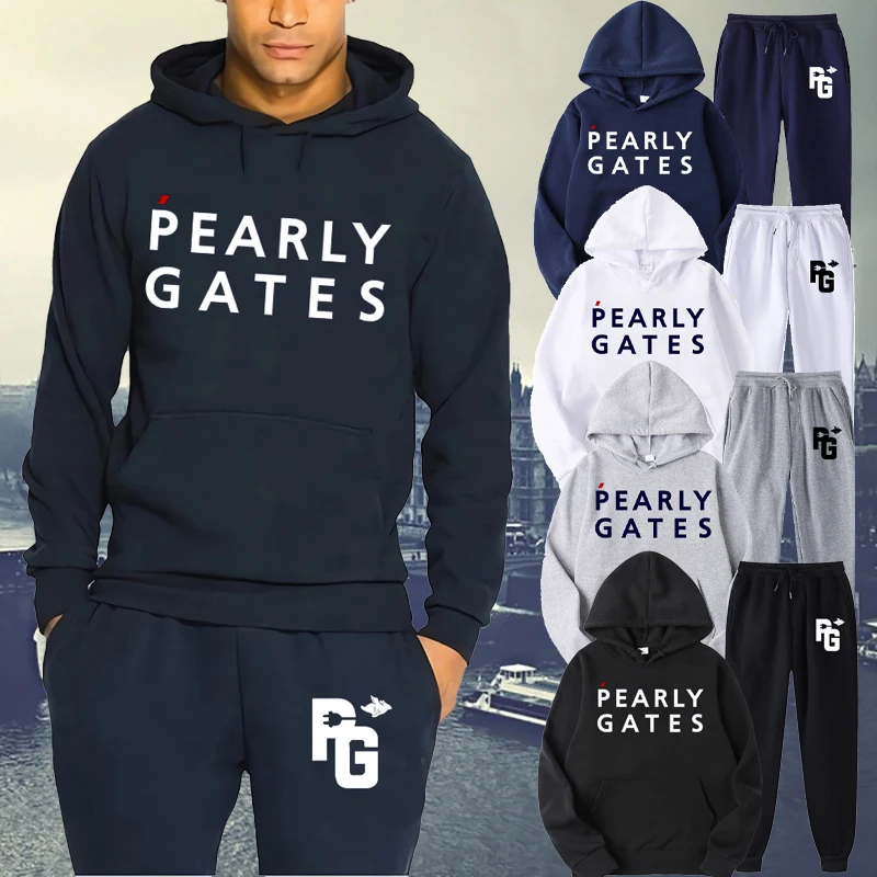 Новинка 2021, толстовка с жемчужными воротами и буквенным принтом + спортивные брюки, Мужская Уличная одежда, однотонный пуловер, топы, мужской костюм