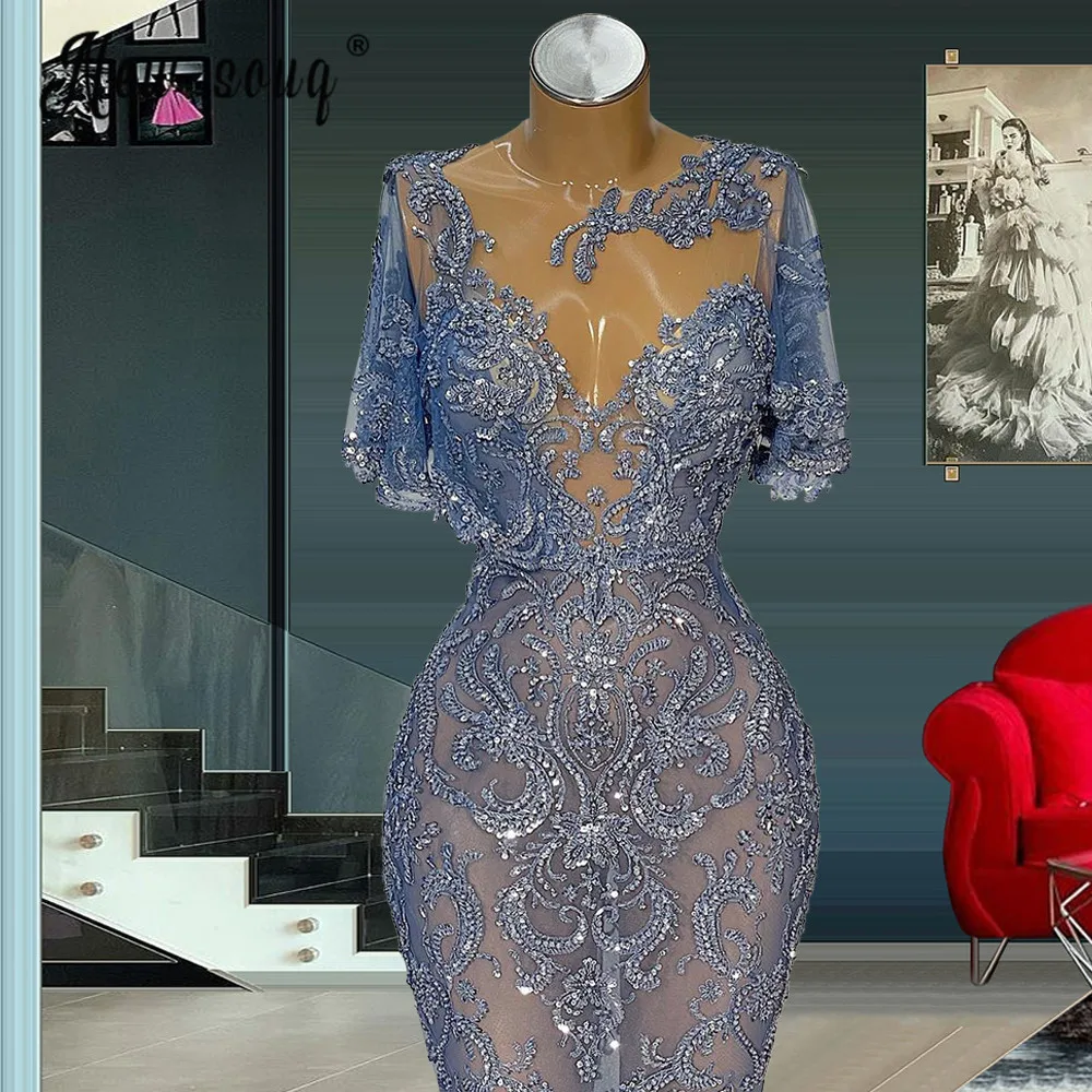 Иллюзия вечерние платья 2021 блестящая синяя аппликация с русалкой бисером вечерние платья знаменитостей Красный ковер подиумные платья