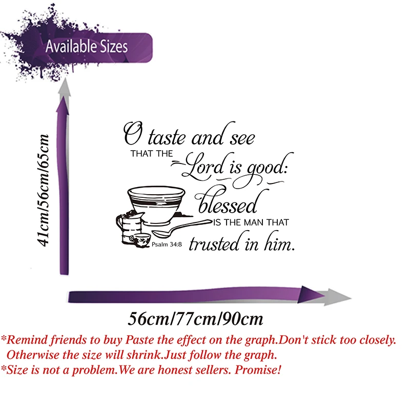 O Taste See That The Lord Is Good наклейка для кухонной стены стих из Христианской Библии Pslam 348 Wall Decal Resturant Vinyl Home Decor