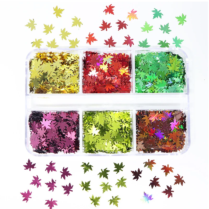 Кленовый лист блестящие хлопья коробка с блестками для эпоксидной смолы форма для наполнителя глина для дизайна ногтей компоненты для изготовления ювелирных изделий DIY Дизайн ногтей Рождество