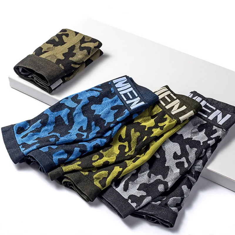Трусы-боксеры мужские Бесшовные, пикантное нижнее белье, камуфляжны...