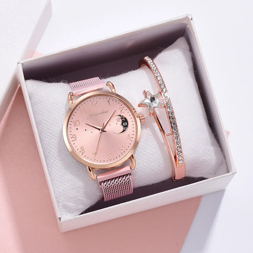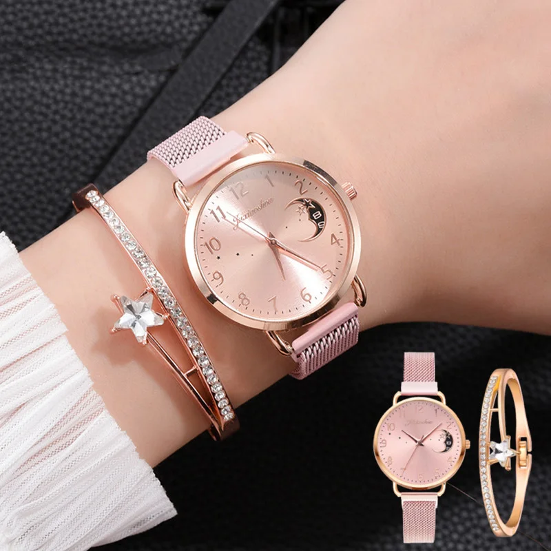 Часы наручные женские кварцевые с лунным циферблатом и циферблатом