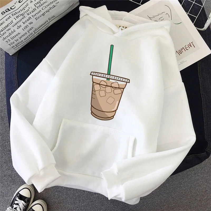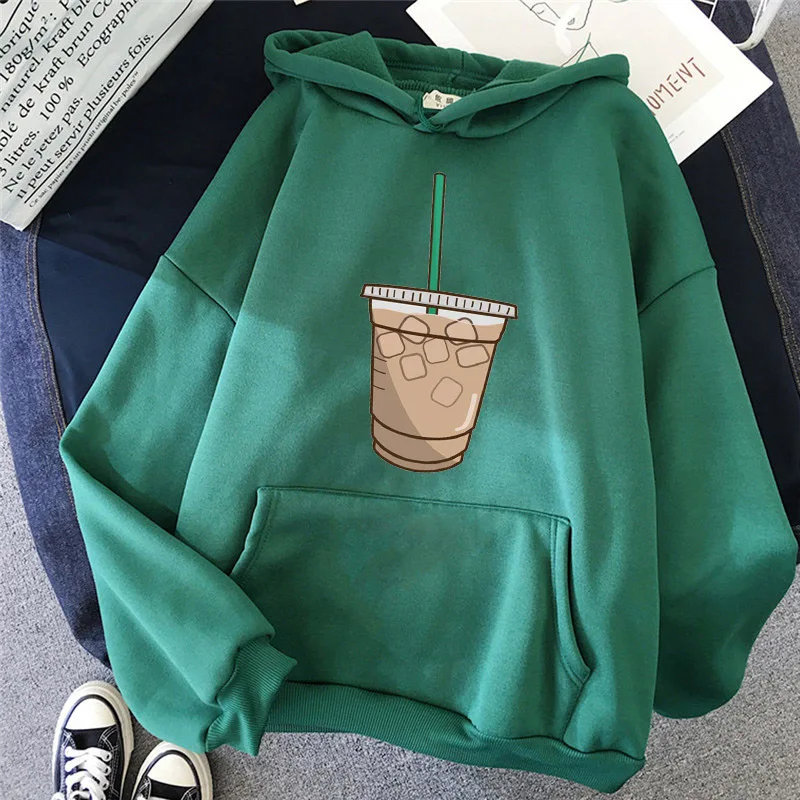 Толстовка Женская кофейная с принтом, Повседневный пуловер с карманами на завязках, модный топ в стиле хип-хоп, свитшот для пар