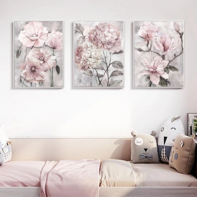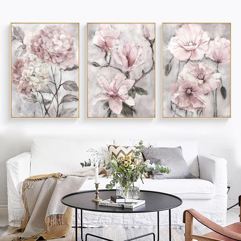 Простой современный американский ретро розовый цветок для гостиной абстрактная декоративная живопись для столовой спальни принты