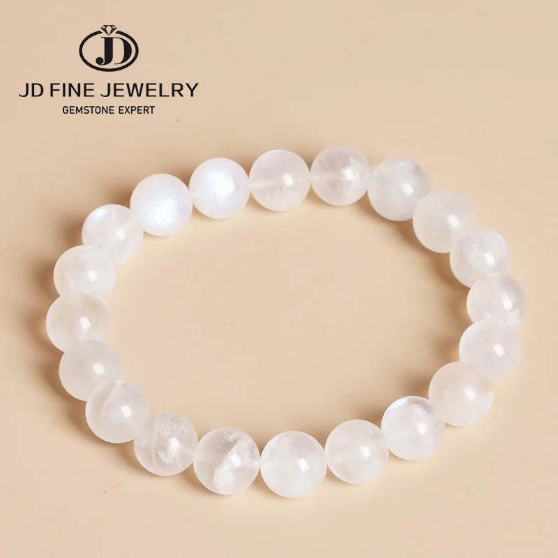 Браслет ручной работы JD A + из натурального камня с голубым лунным камнем для женщин и мужчин, круглые бусины 6810 мм, эластичный браслет из веревки