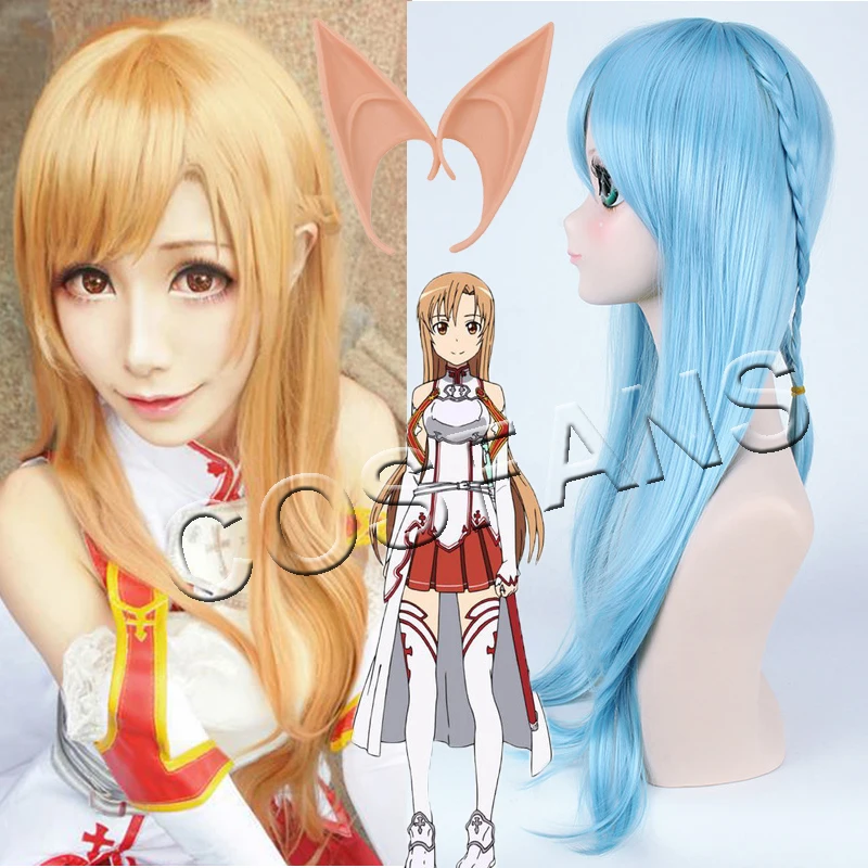 Yuuki костюм Asuna для косплея (костюмированных игр) Искусство меча онлайн Asuna Elf Ears и Aqua прямые волосы аксессуары для костюма Титания бесплатная шапочка для парика