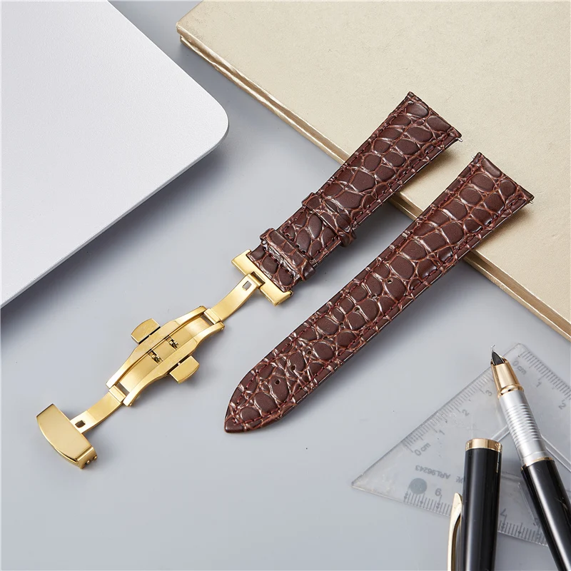 Ремешок из кожи крокодила с автоматической застежкой-бабочкой для Samsung Watch 4 40 мм 44 мм для Galaxy Watch 4 Classic 42 мм 46 мм