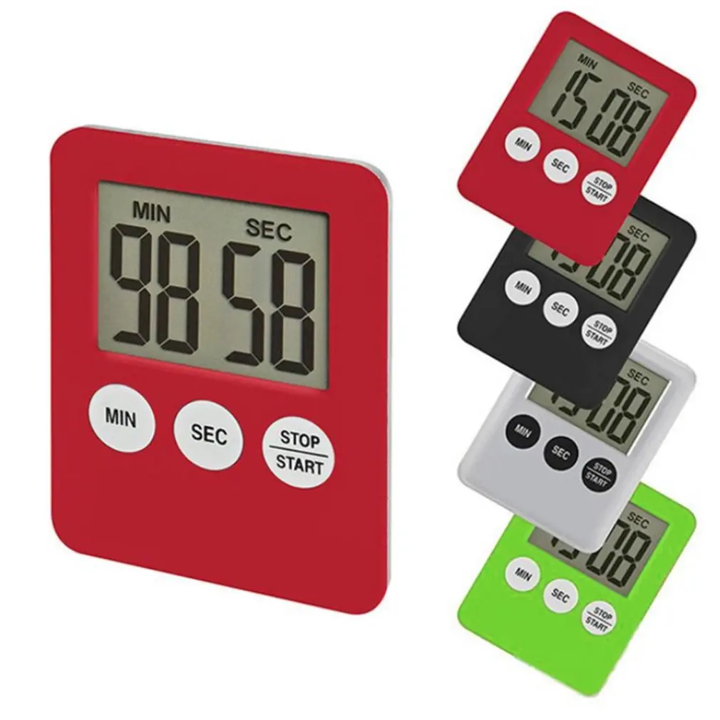 Новинка, 1 шт., 7 цветов, сверхтонкий кухонный таймер с цифровым ЖК-дисплеем, квадратная зеркальная фотография