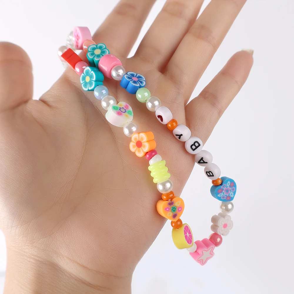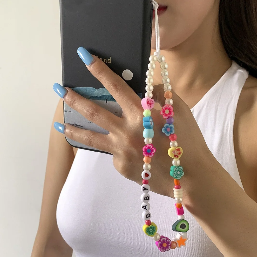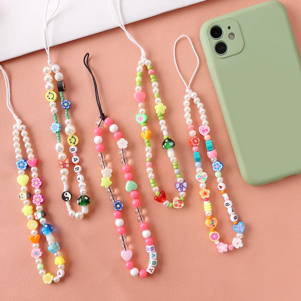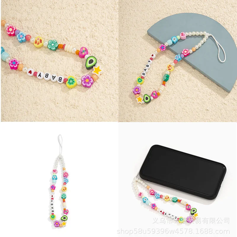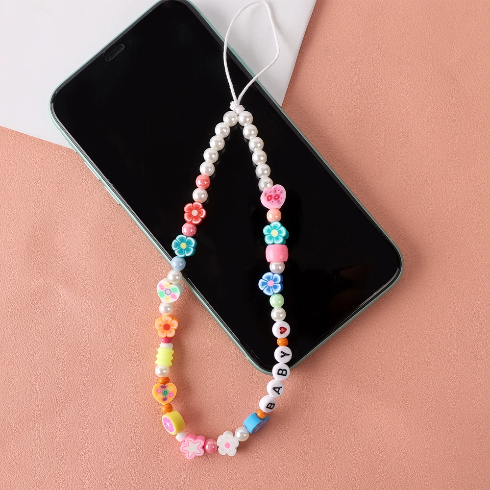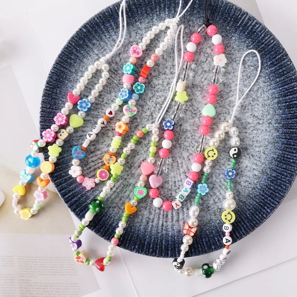 Мягкий цветной глиняный шнурок, цепочка, акриловые бусины, подвеска, брелок, цепочка для ключей, браслет для девочек, украшение для телефона